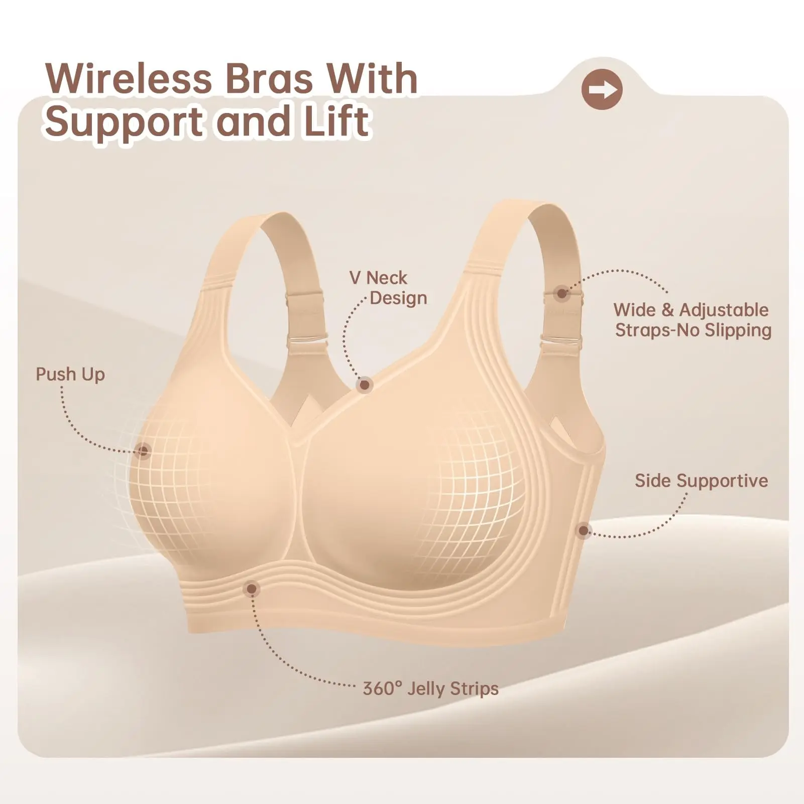 5. Women Jelly Bras Wirefree Full Coverage No Underwire Everyday Bras Comfortable Wireless Padded Tshirt Bra