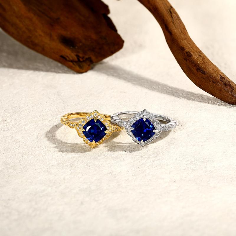 Discover the ATTAGEMS Cushion Cut 7.7mm Lab-Created Blue Sapphire Ring. This exquisite piece is crafted for women who appreciate fine jewelry. The ring features a stunning cushion-cut blue sapphire, set in 925 sterling silver. It's a perfect blend of elegance and sophistication. Ideal for special occasions or everyday wear.