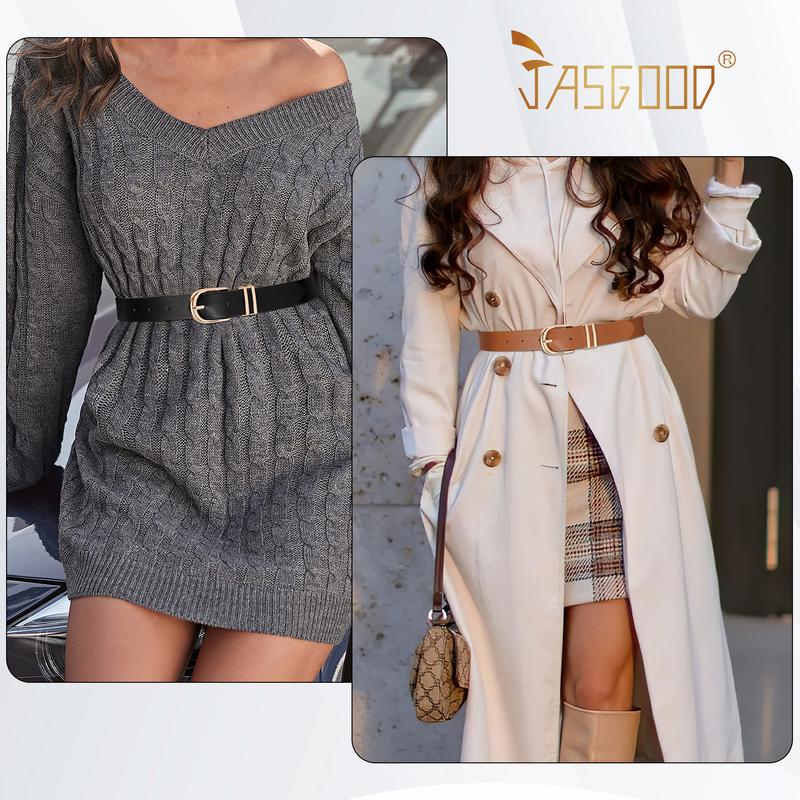 JASGOOD 3 Pack Women Leather Belts Ladies Faux Waist Belt with Gold Buckle For Jeans Dresses Pants