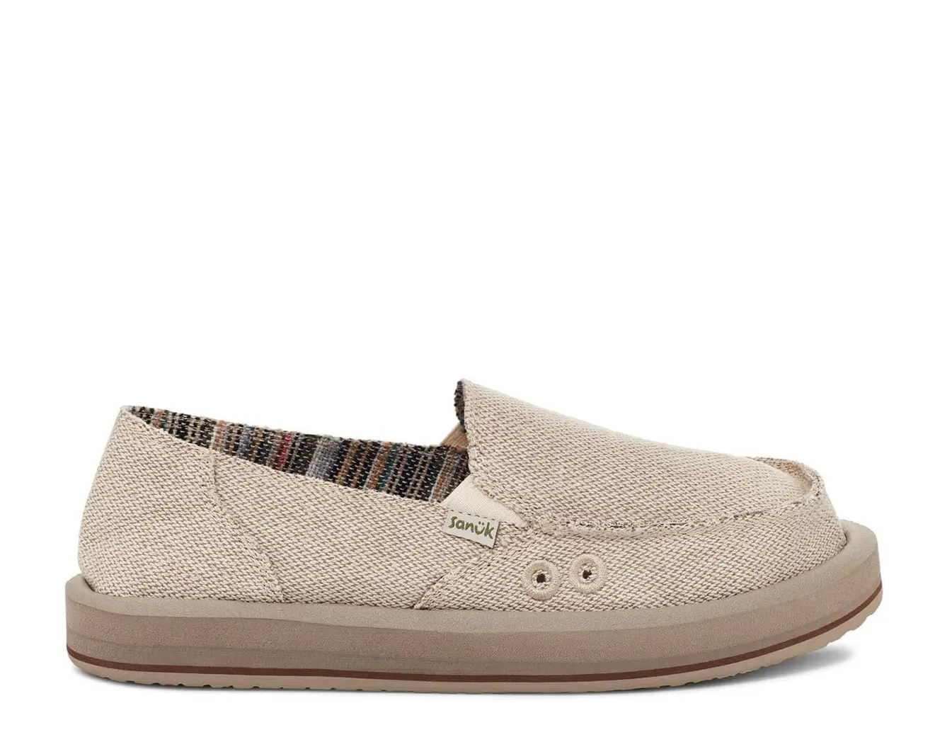 These are a lot of our favorite things! We always wondered how many natural elements, cool fabrics, and fun design characteristics we could fit into a comfy slip - on And the answer is right here. Behold Donna ST Natural — a laidback yet progressive amalgamation of hemp, cotton, wool, jute, responsibly sourced suede, polyester, and gore — featuring soft blanket lining and our wildly cushiony, lively, high - rebound Soft Top Foam midsoles