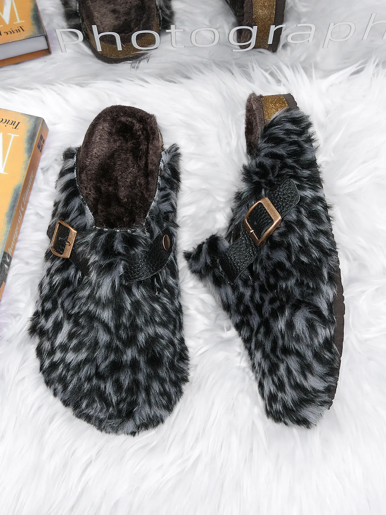 Women Men High-Quality Faux Fur Mules, Classic Animal Pattern, Wide Fit Leopard Design, Perfect Holiday Gift, Warm Winter Shoes