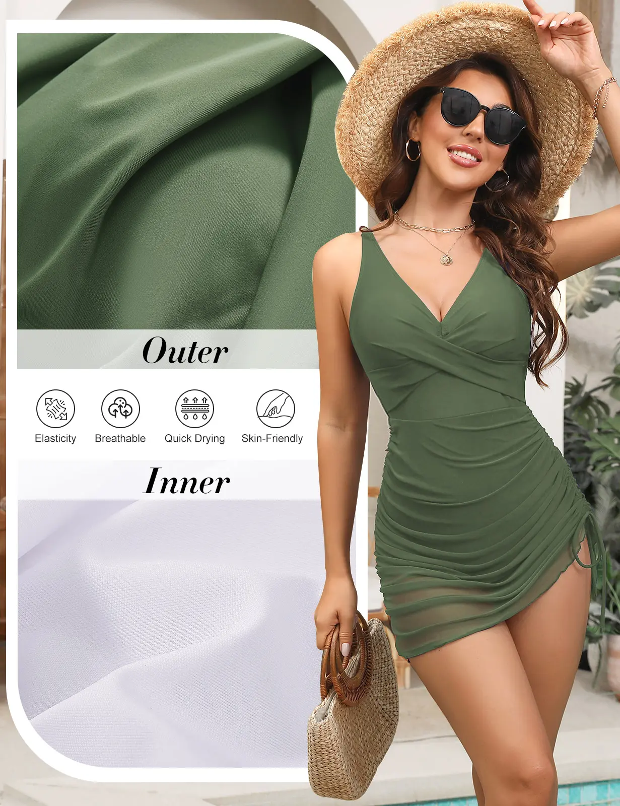 I love this swimsuit, great material and beautiful sheer skirt. I will buy some other colors too.