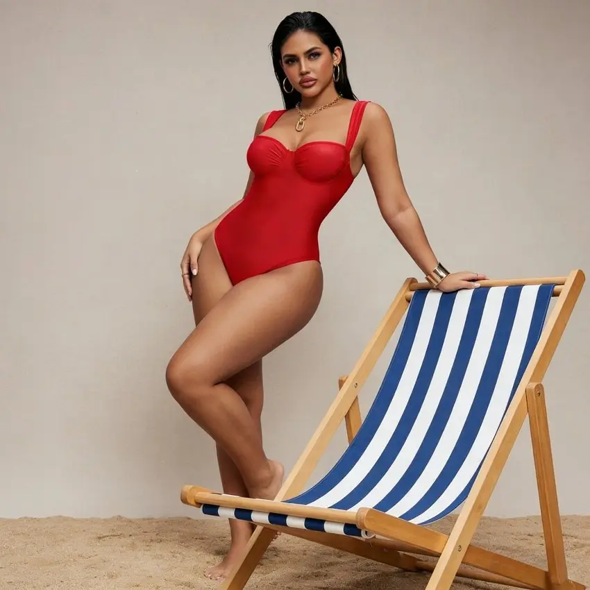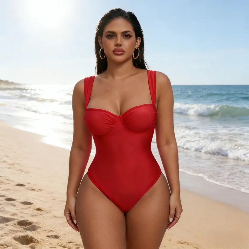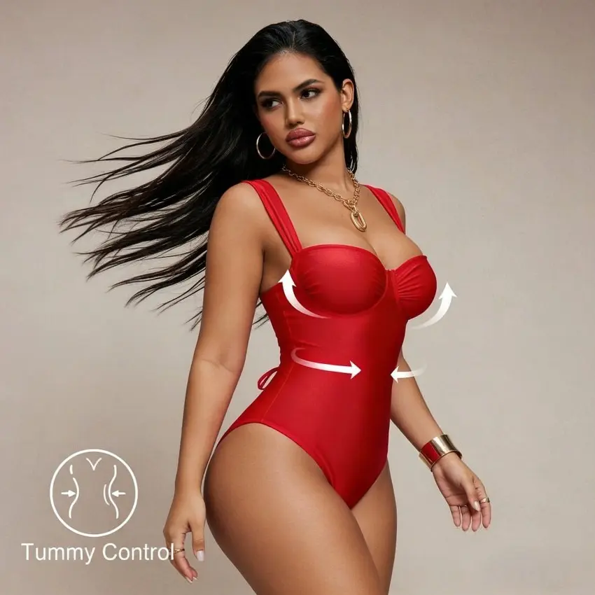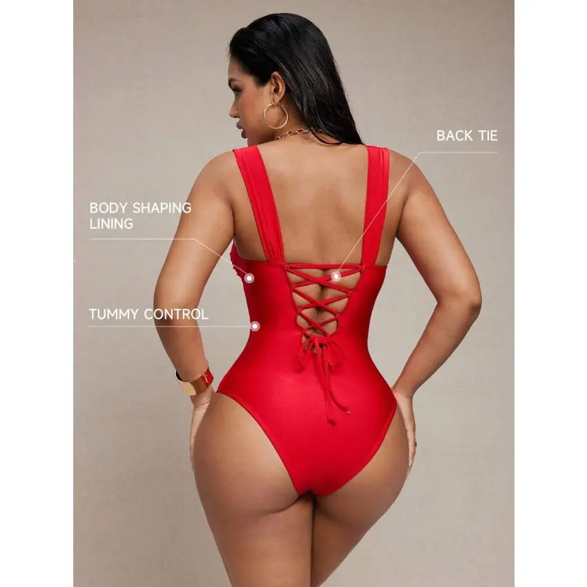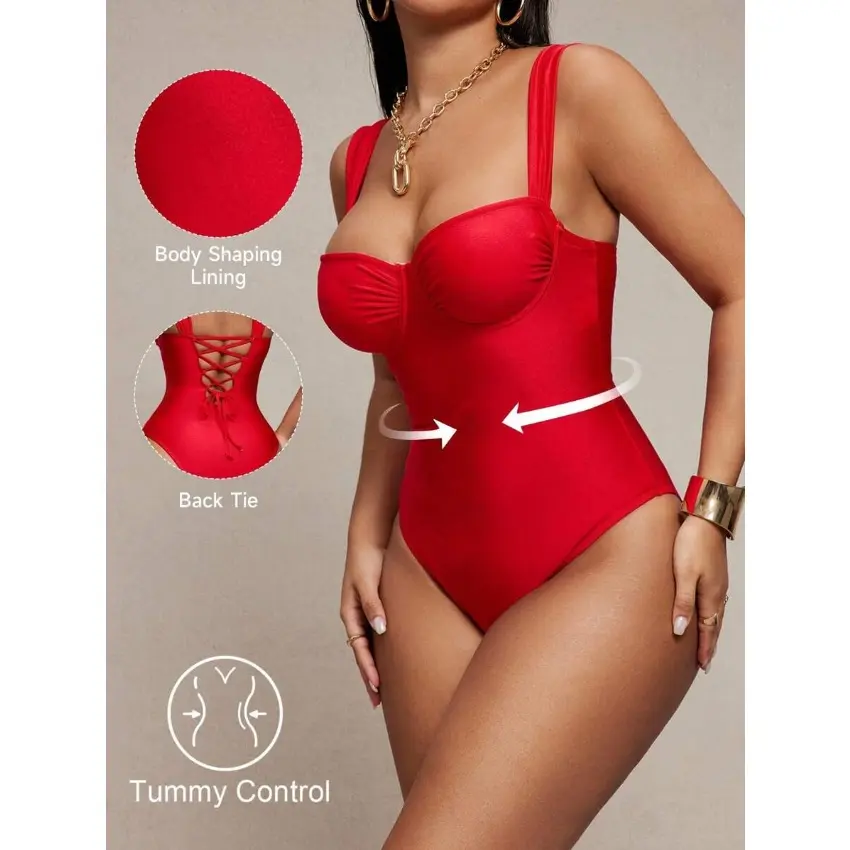 5. Women Plus Size Shiny Fabric Ruched Wrap One Piece Swimsuit For Spring Summer Beach Holiday Wear, Tummy Control Design With Flattering Supportive Fit