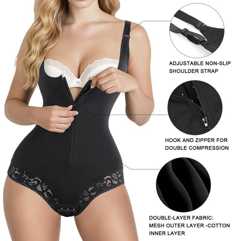 Please select based on your usual clothing size; there is no need to size down. Shape Your Curves, Show Your Confidence This Colombian-style shapewear bodysuit is designed to flatten the abdomen and lift the hips, following the natural lines of your body to effortlessly sculpt a smooth, feminine silhouette. The high-waist design effectively slims your midsection, allowing you to confidently showcase your curves in dresses, gowns, or everyday outfits. Firm Compression & Comfortable Support Featuring a double-layer structure with a sturdy outer zipper and hidden inner hooks, this bodysuit precisely shapes your midsection. Even during extended wear, it balances firm compression with comfort. If the chest feels too tight, you can adjust the inner hooks to your preferred fit for a personalized experience. Adjustable & Non-Slip Straps Thoughtfully designed adjustable, anti-slip straps provide stable support without shifting. The open chest design allows you to wear your favorite bra while lifting the bust and smoothing the underarm and back areas. Convenient Details & Elegant Design The underwear section features lace accents and a sleek cut, enhancing your figure while maintaining comfort. A special crotch design allows easy restroom access without removing the shapewear. Versatile & Thoughtful Choice Perfect for weddings, parties, dances, holiday gatherings, or daily office wear, this shapewear bodysuit is an ideal way to showcase your curves. It also makes a thoughtful gift for yourself or a friend, helping boost confidence and style.