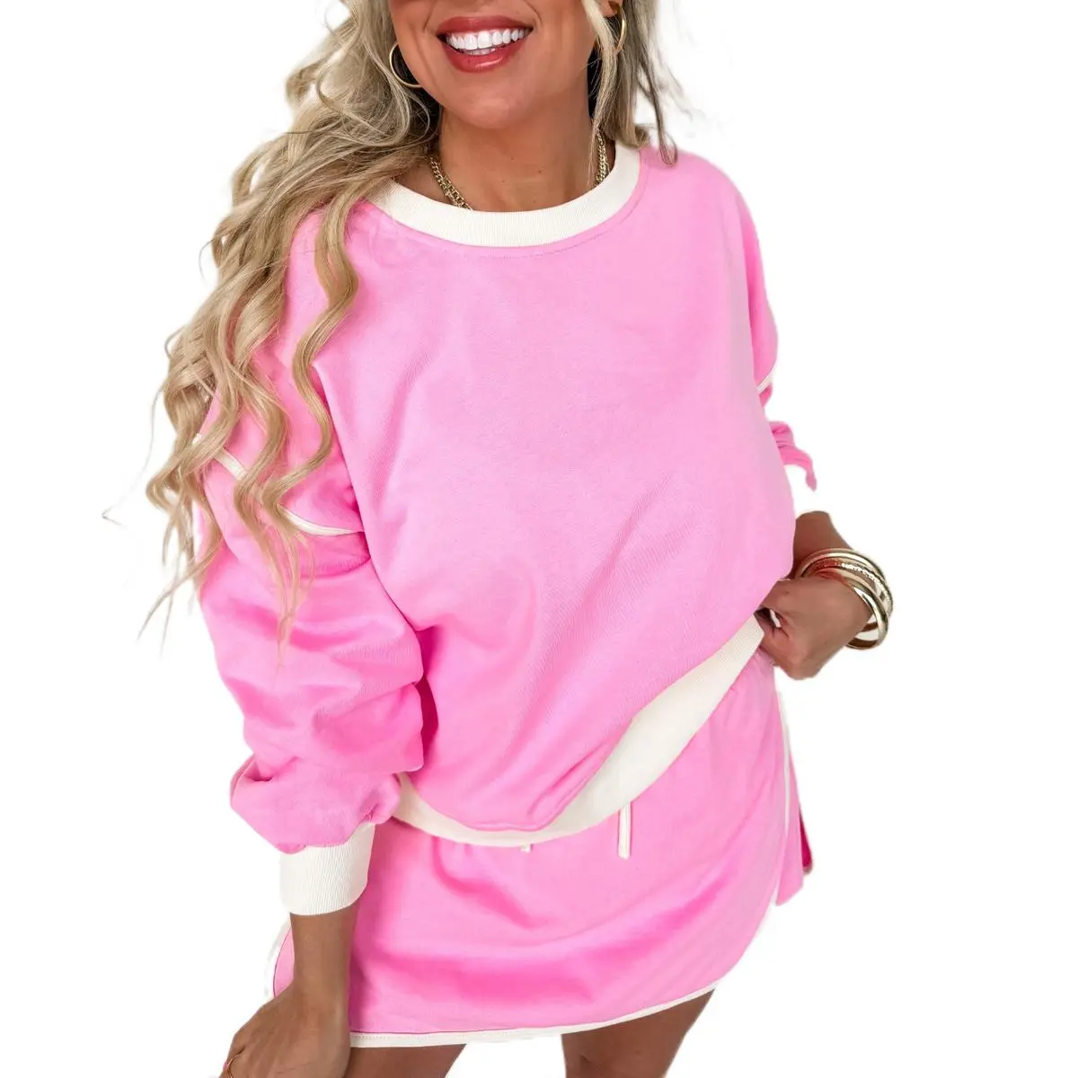 Super cute outfit but the colors of my shirt and shirt were not the same orange in the trim and it bothered me so bad. But super cute set! I WOULD HAVE RATHER GIT LONG SLEEVE. That’s my only regret! Cute cute cute