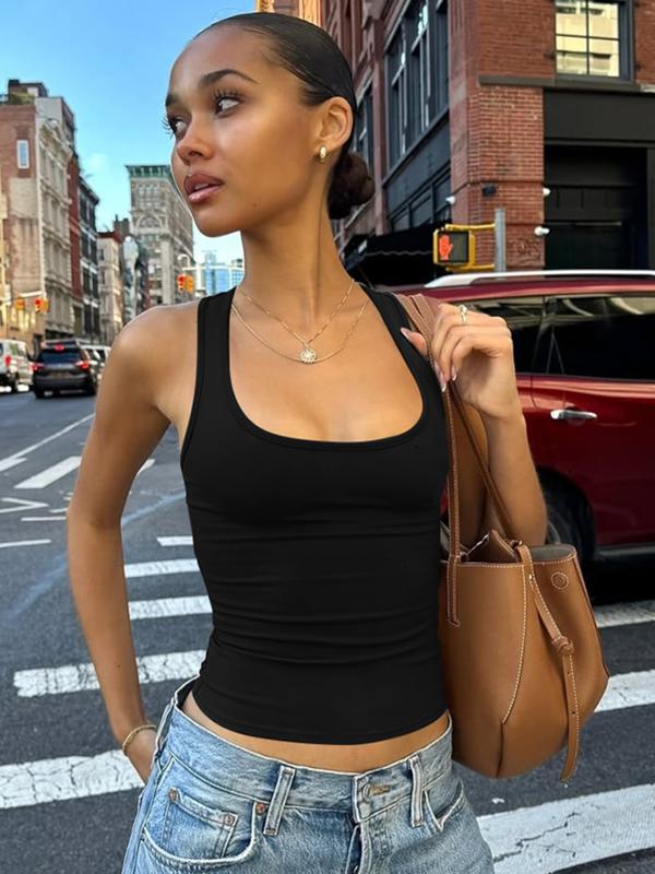 Women‘s Basic Solid U Neck Tank Top, Sleeveless Backless Plain Slim Fit Crop Top for Party Club Date Holiday Daily Casual Outdoor Clothes Wear, Casual Fitted Sleeveless