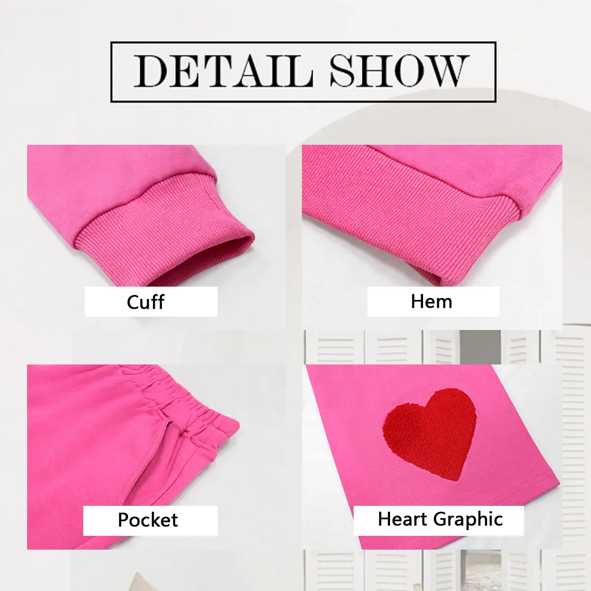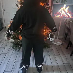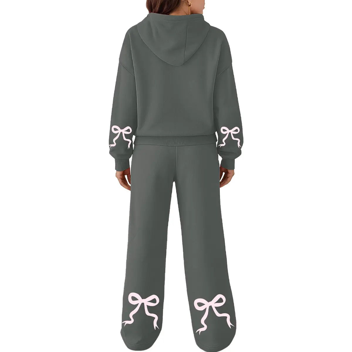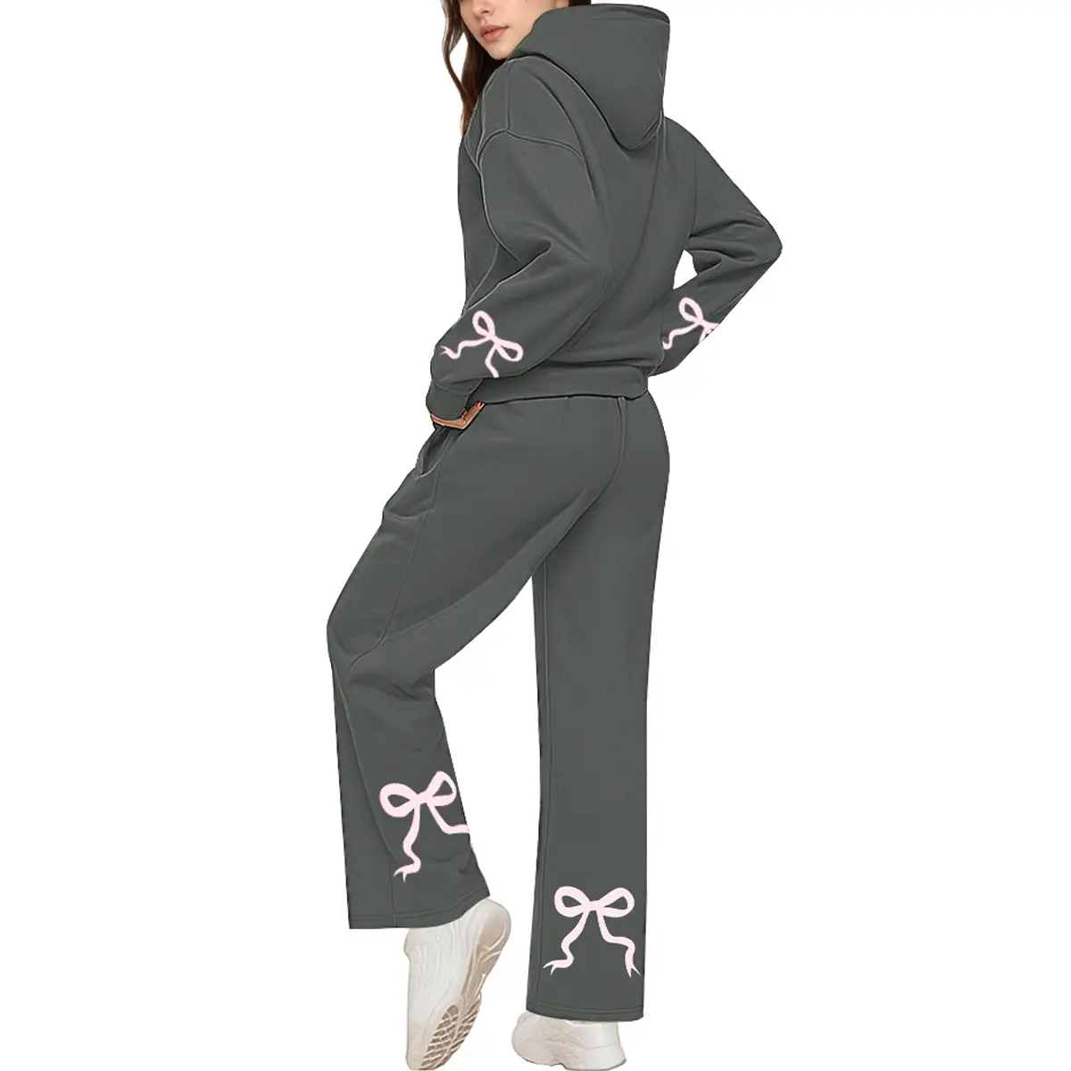 ·Design – This stylish hoodie features dropped shoulders, full-length sleeves, and comes in both solid tones and fun prints like bows, hearts, or cherries. Paired with high-rise, wide-leg sweatpants designed with side pockets and a flattering elastic waistband that enhances your shape without compromising comfort.
