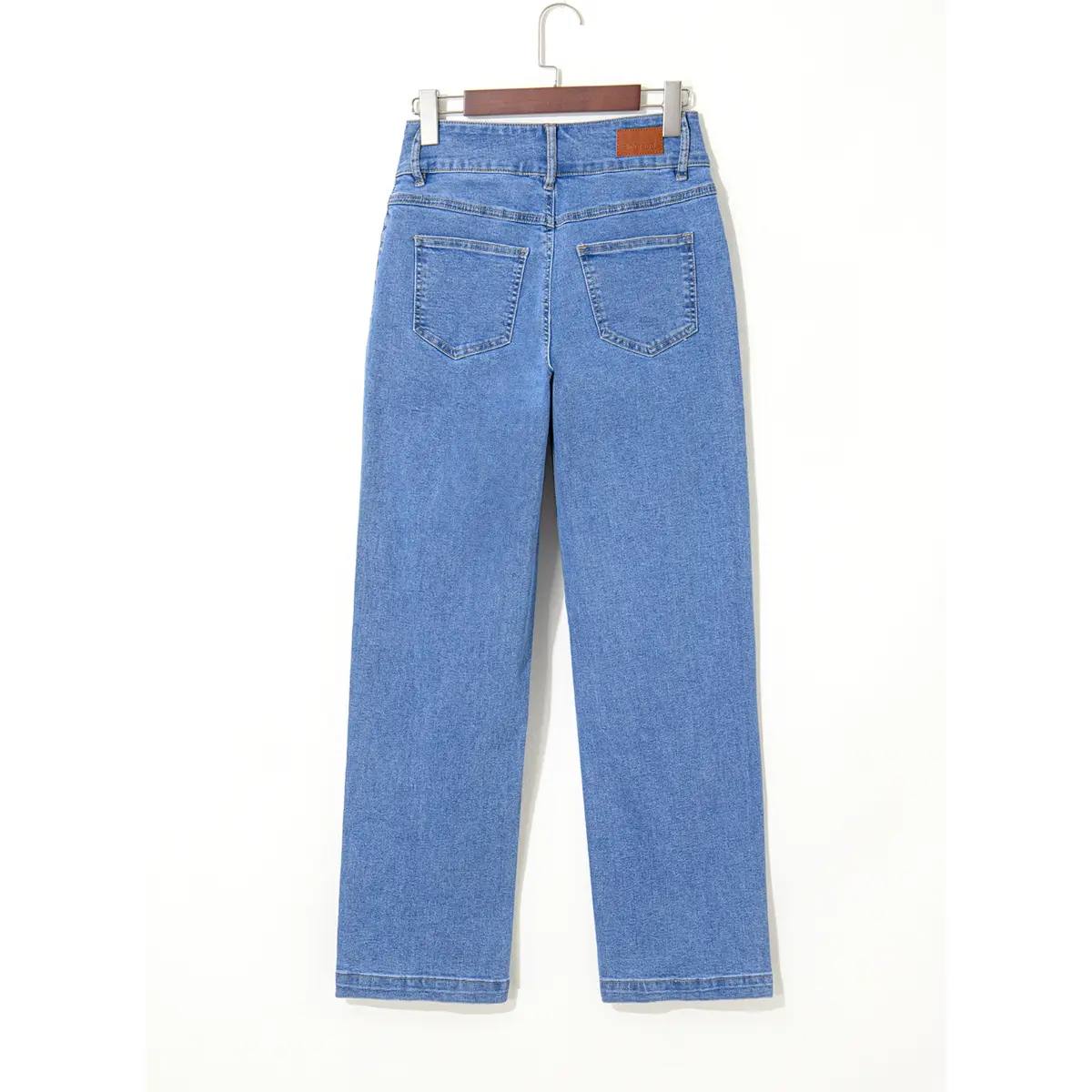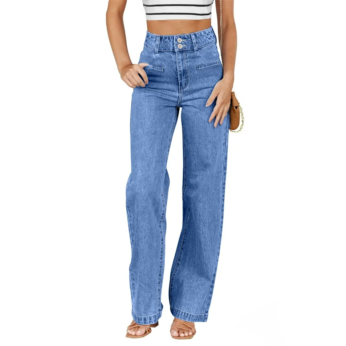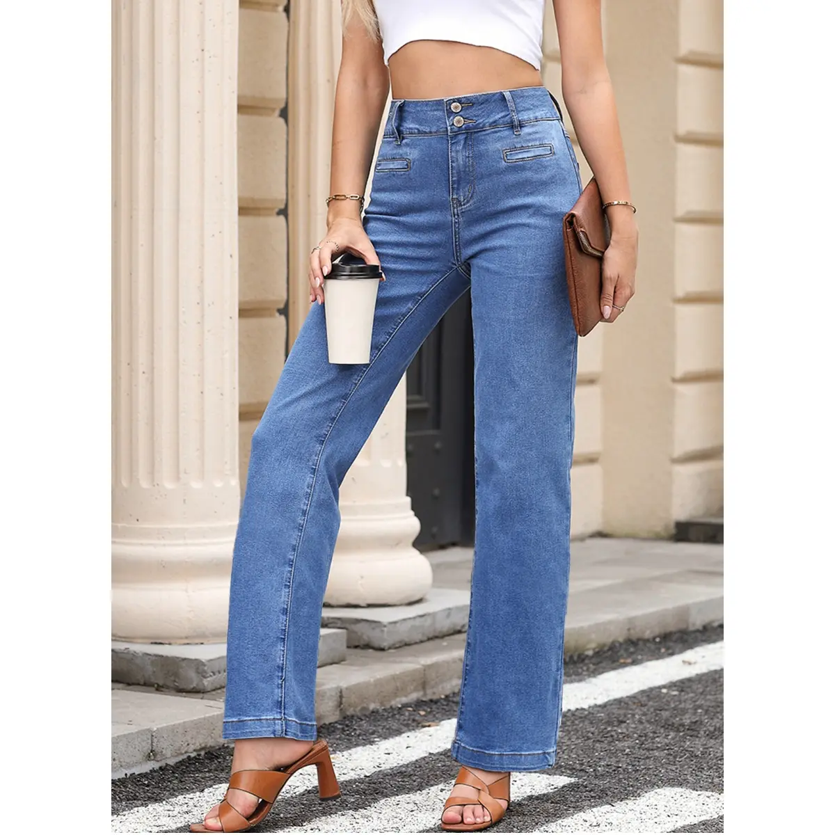 ·Innovative Design: These women's jeans feature a convenient dual-button closure, trendy front welt pockets, and two practical rear pockets. The straight leg cut and functional details create a perfect blend of modern style and everyday functionality.