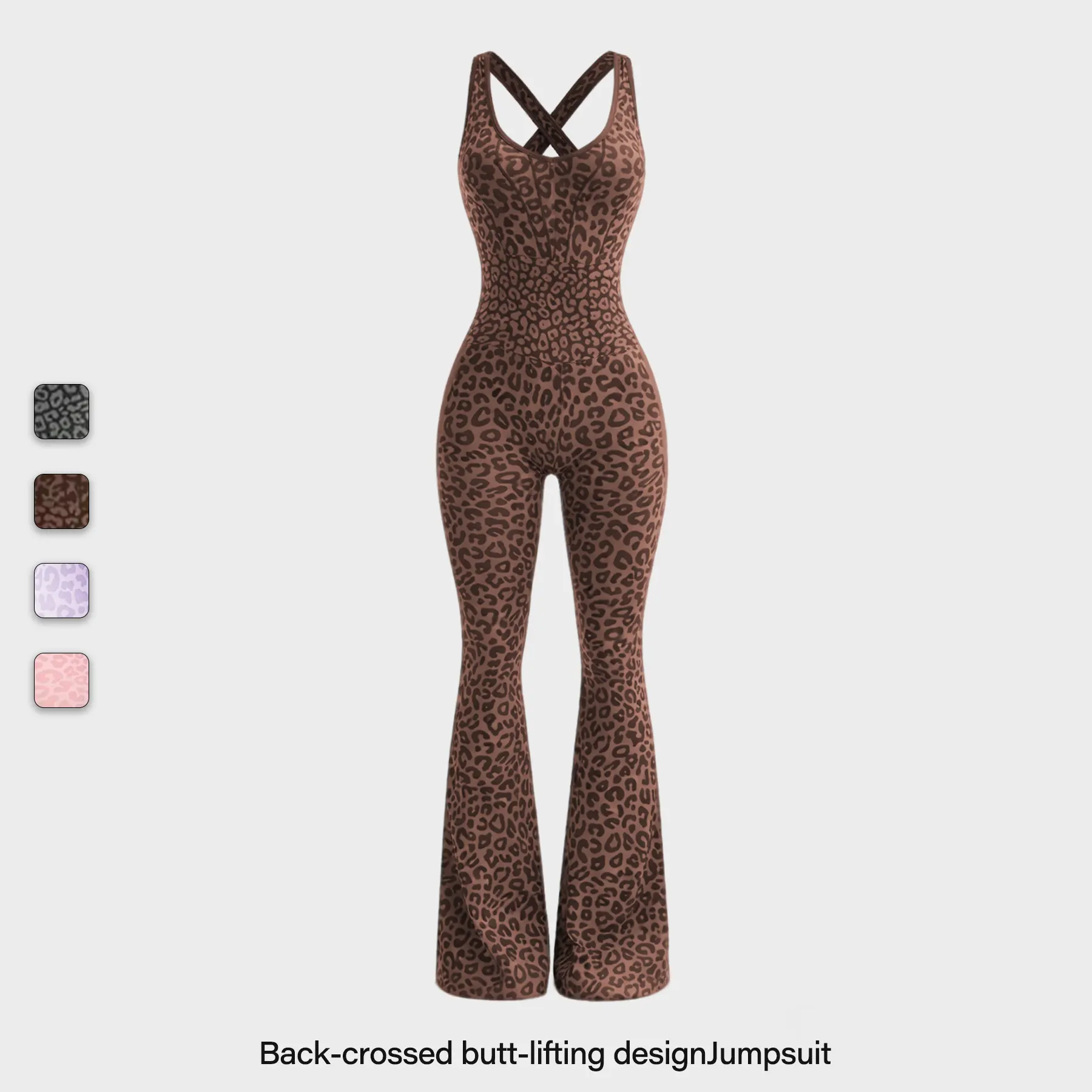 Leopard Print Flare Active Jumpsuit | Criss-Cross Back Workout One-Piece #leopardactivewear #gymjumpsuit #athleisurestyle #workoutfit #sportychic