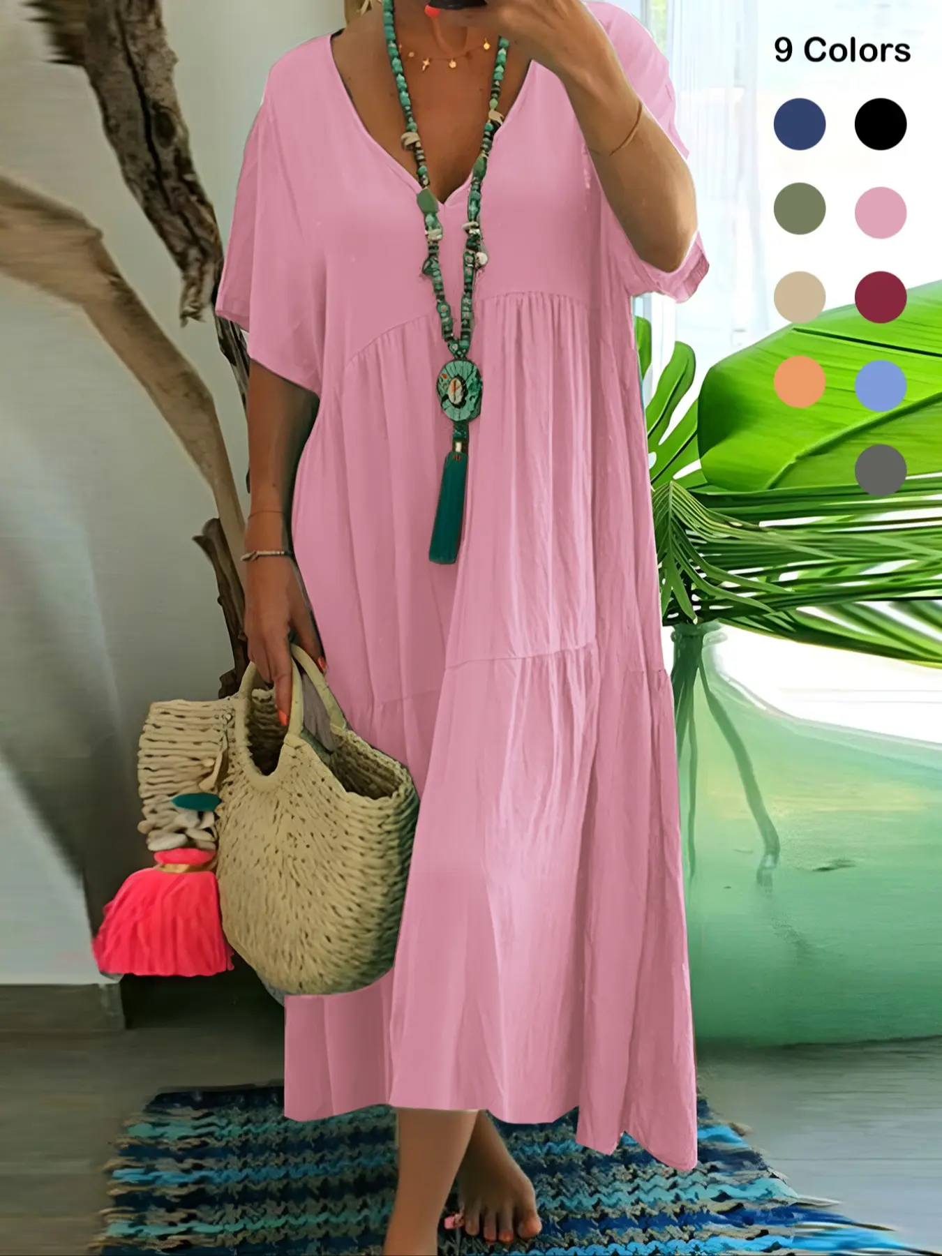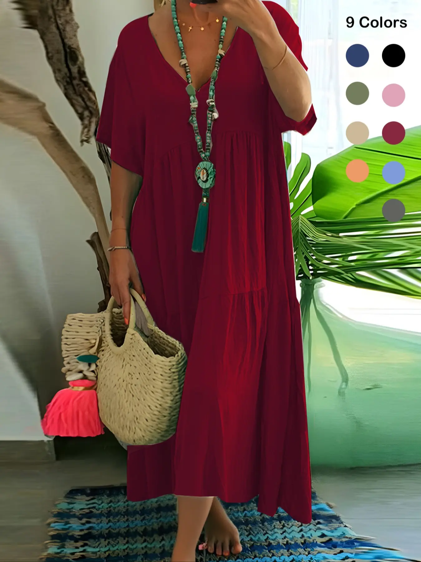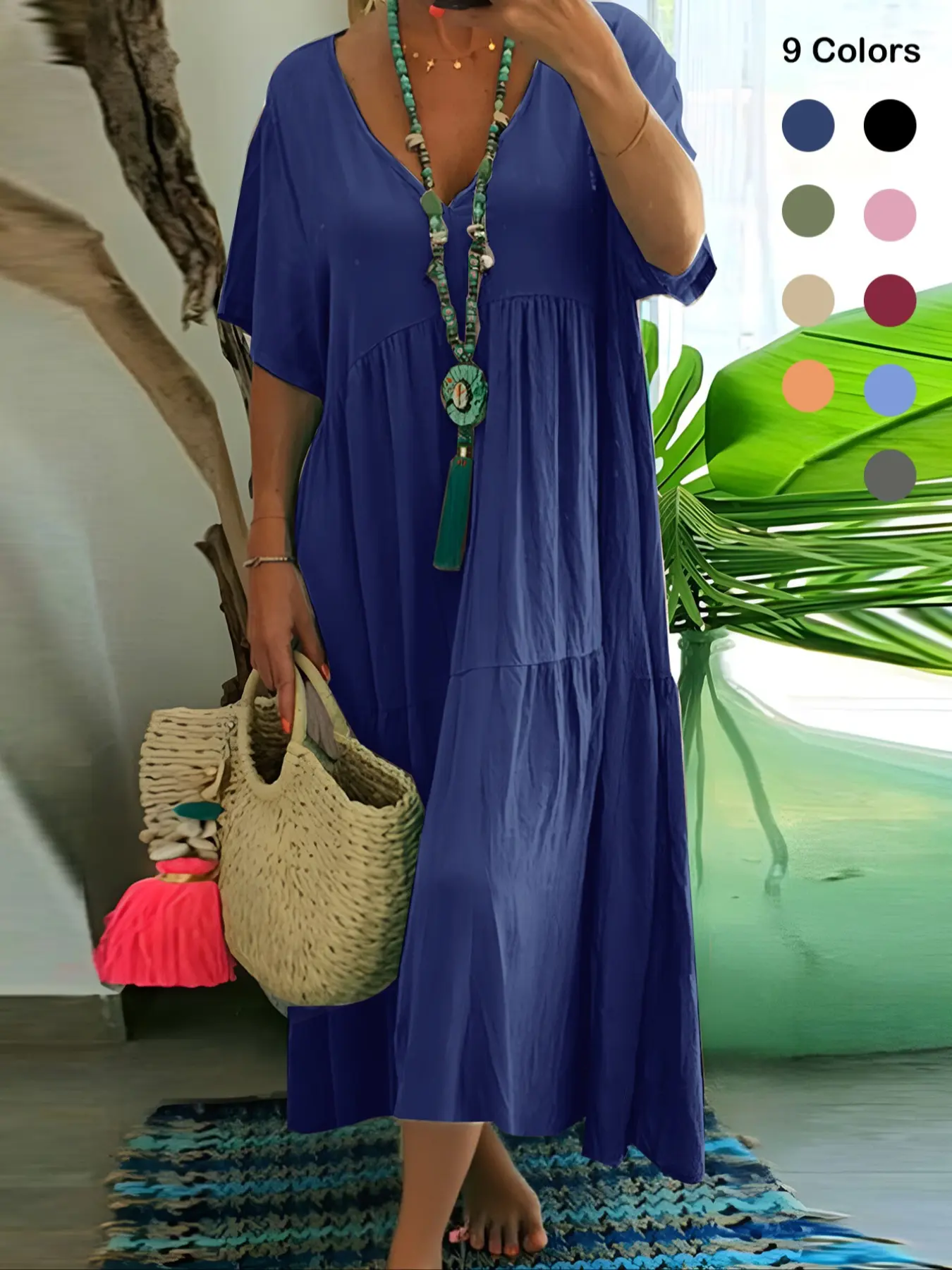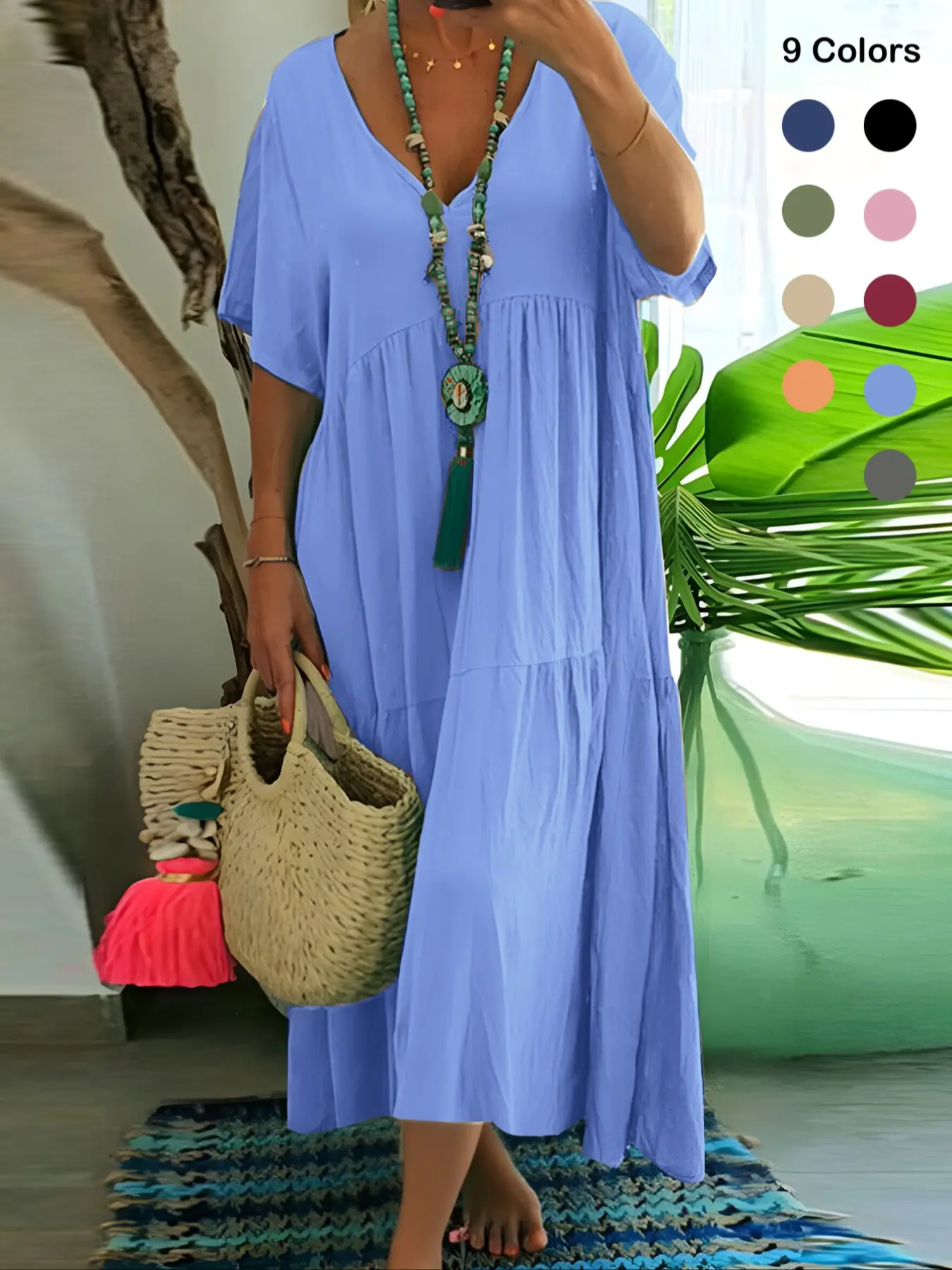 I am so happy with this dress! It looks exactly like the picture. I bought the blue in a 1XL. I am 5 foot and 3 inches tall, and I weigh 175 pounds. It fits just right. When I first got it, I was afraid because the sleeves looked really short, but they come all the way down to my elbows. Considering purchasing another color! Once I add jewelry and some cute sandals, I know it’s going to be great.
