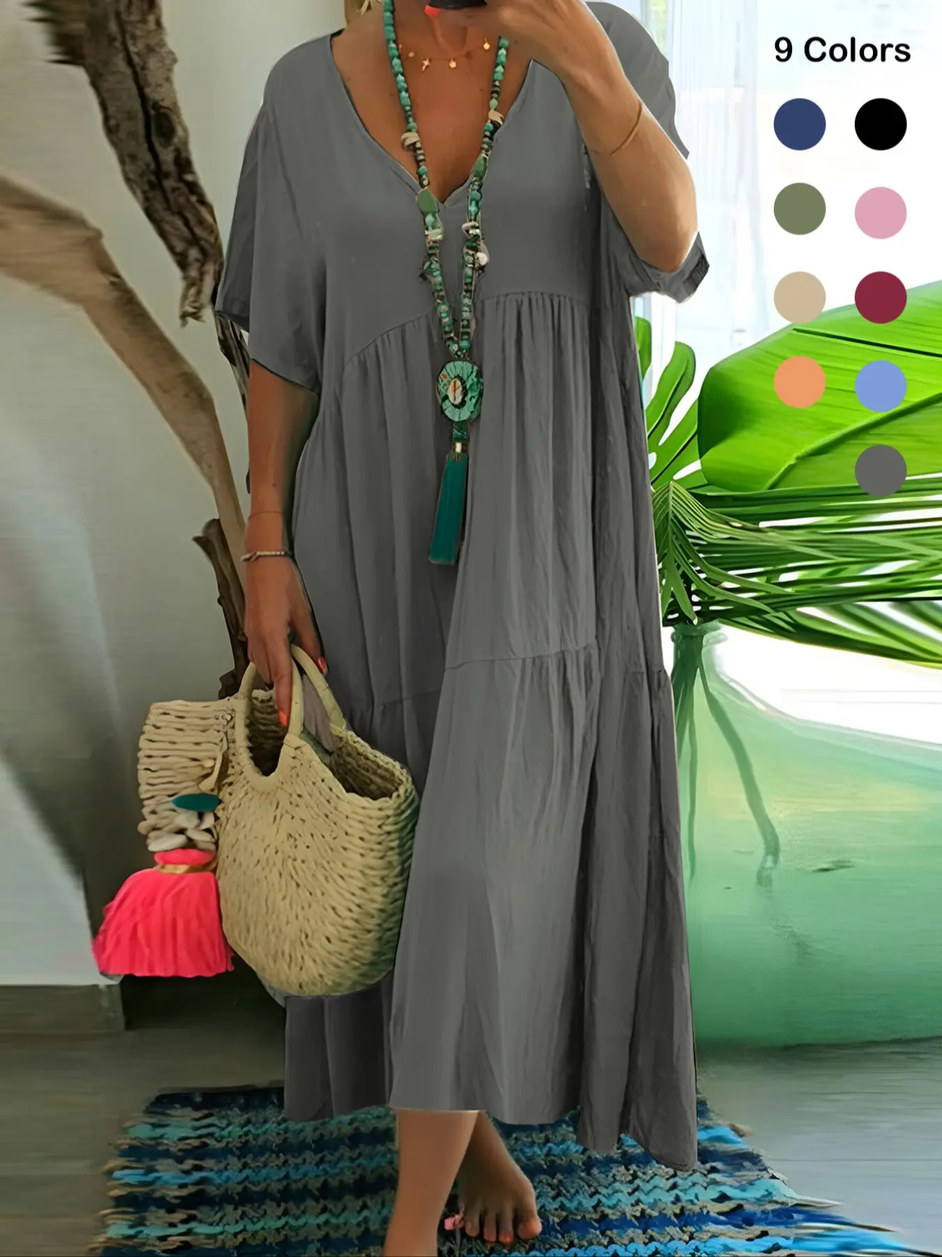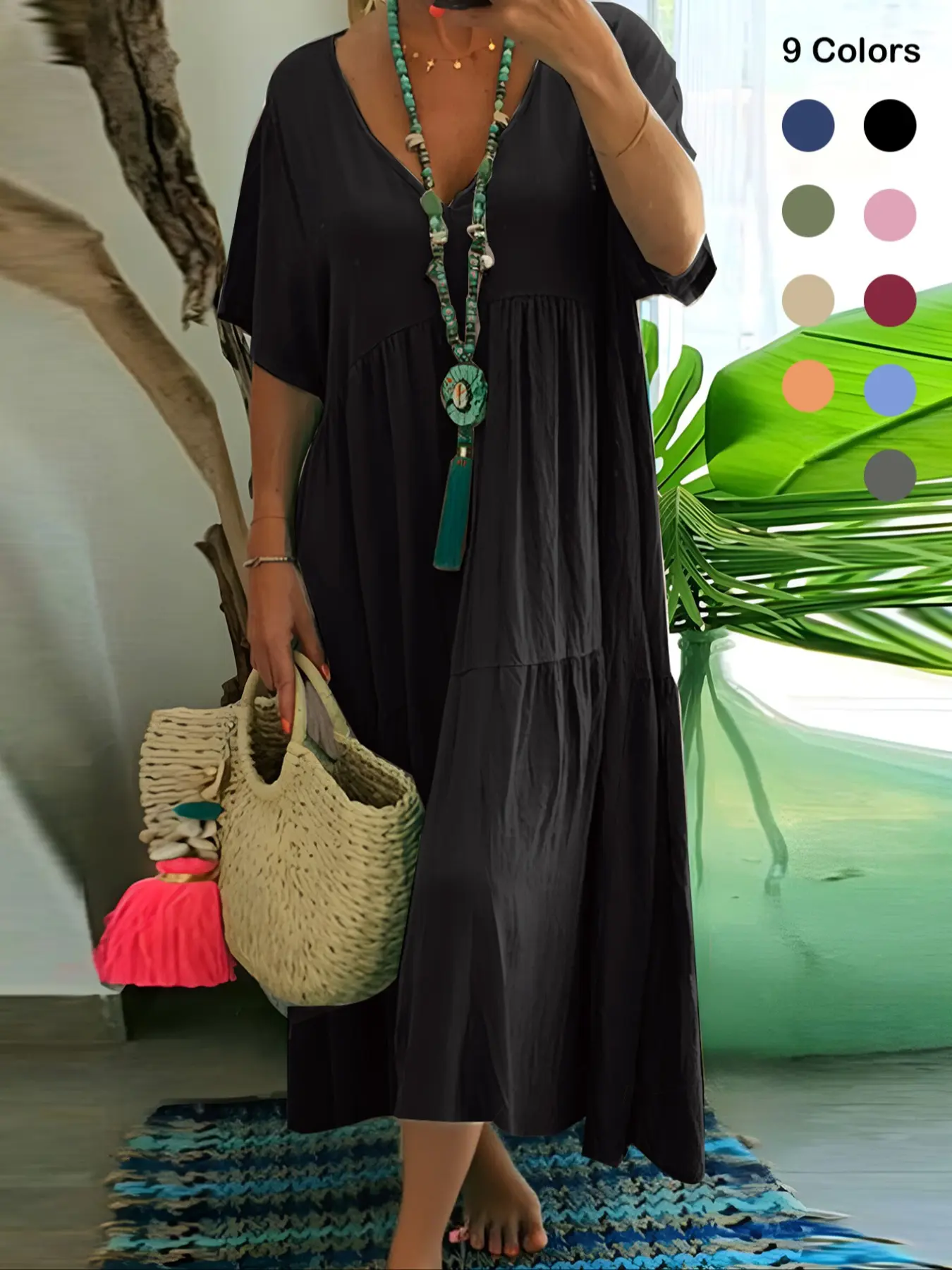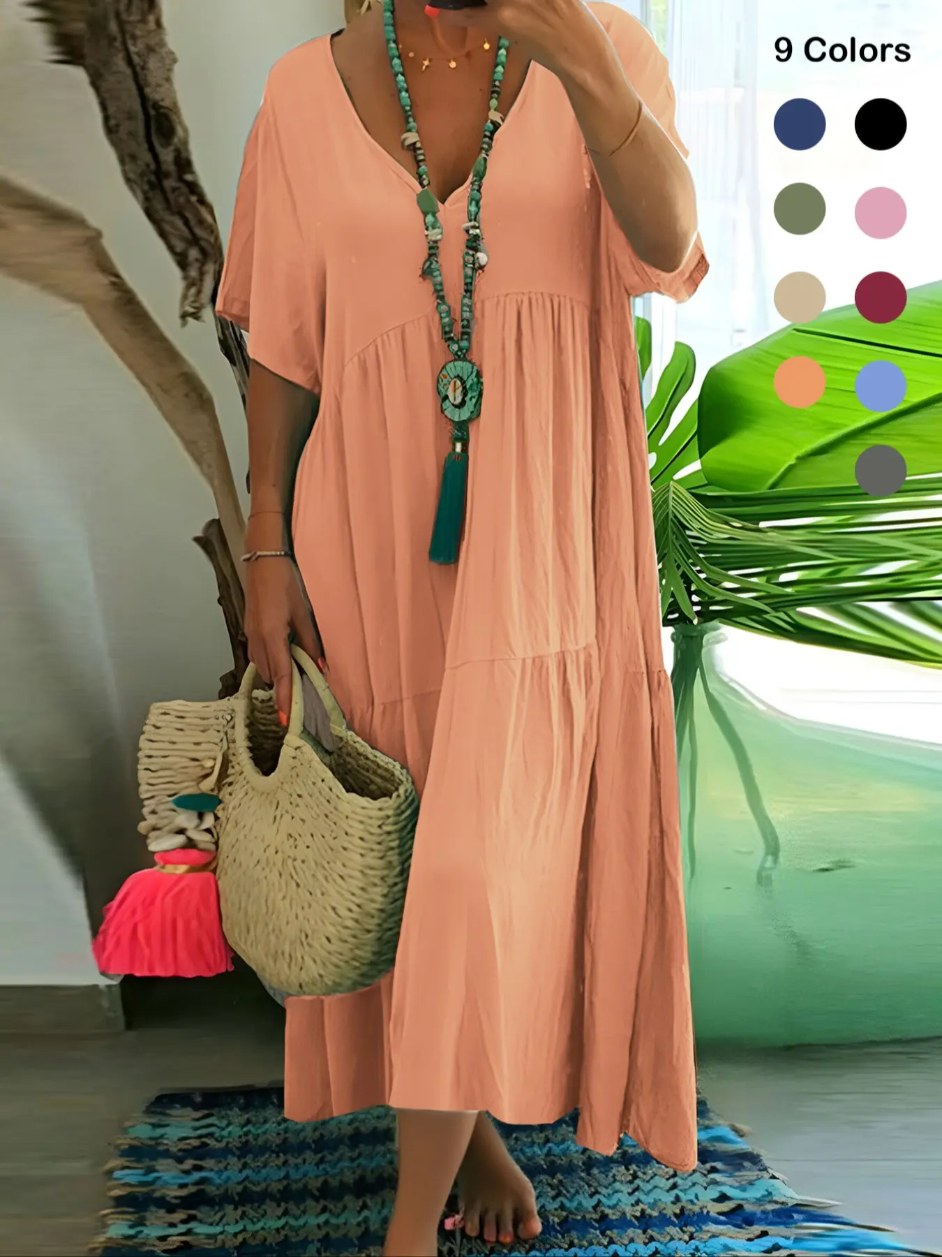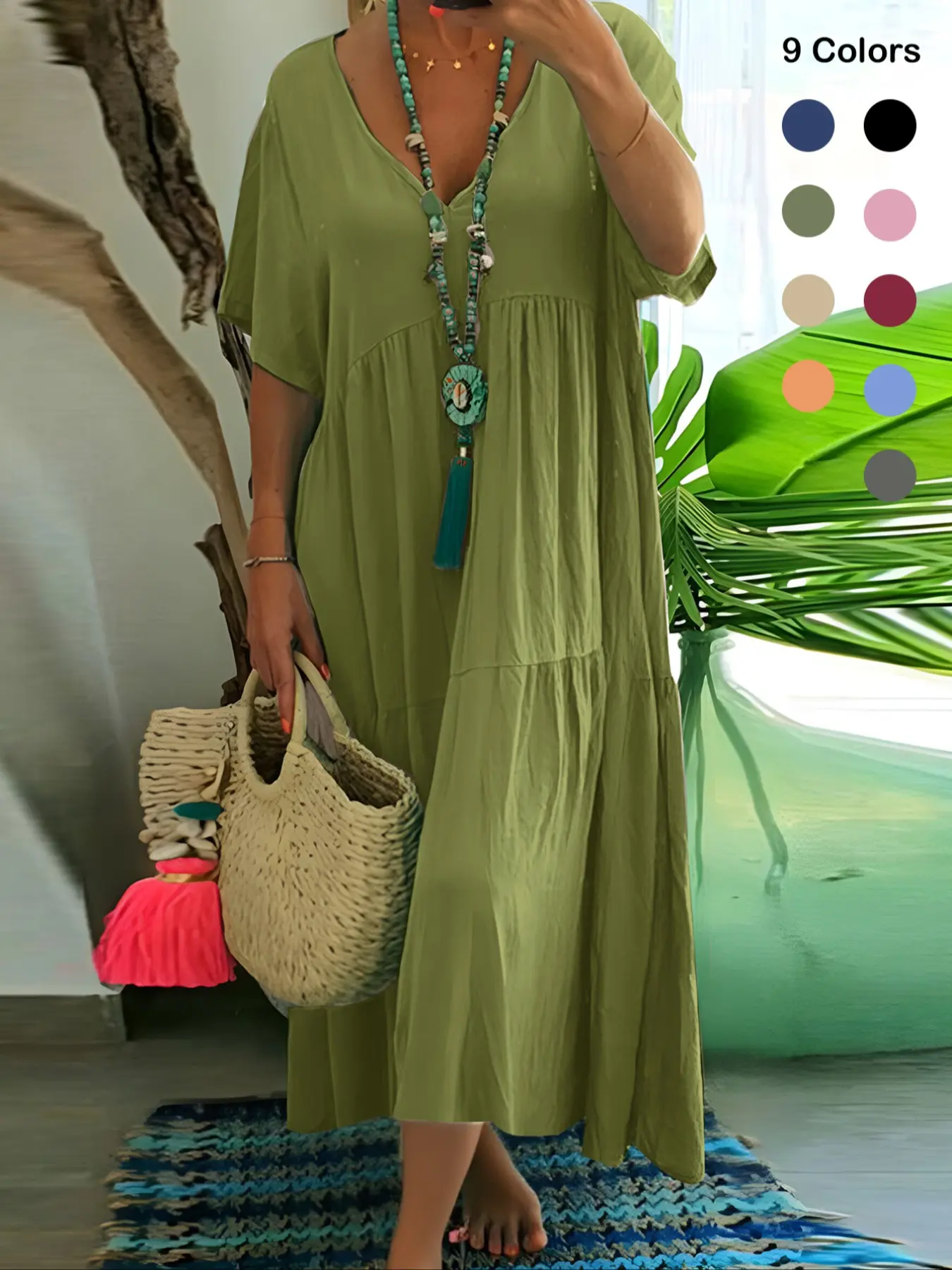 I am so happy with this dress! It looks exactly like the picture. I bought the blue in a 1XL. I am 5 foot and 3 inches tall, and I weigh 175 pounds. It fits just right. When I first got it, I was afraid because the sleeves looked really short, but they come all the way down to my elbows. Considering purchasing another color! Once I add jewelry and some cute sandals, I know it’s going to be great.