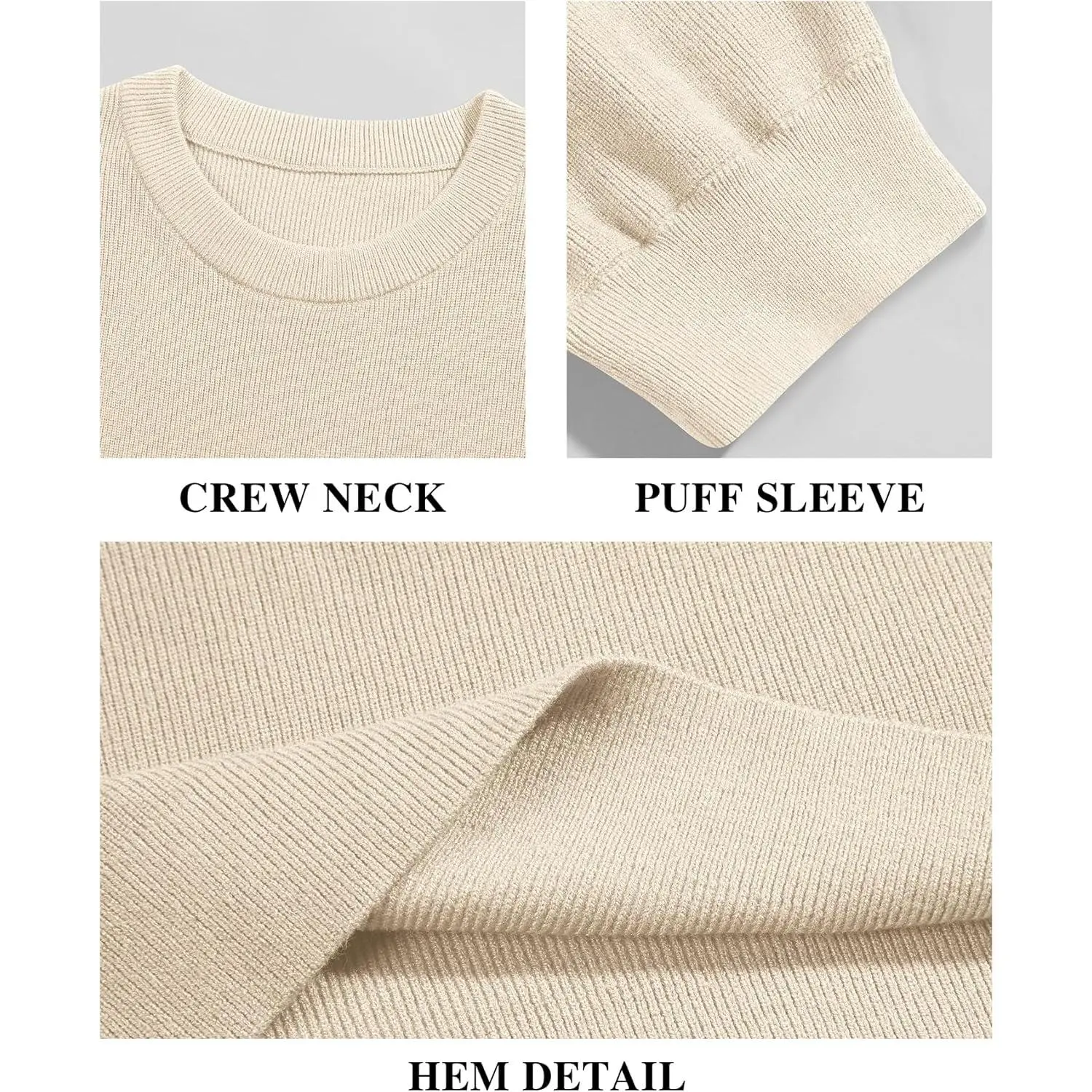 Saodimallsu Women‘s Crew Neck Spring Puff Short Sleeve Knit Sweater