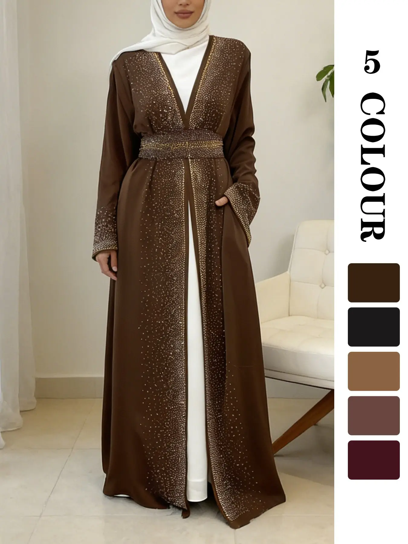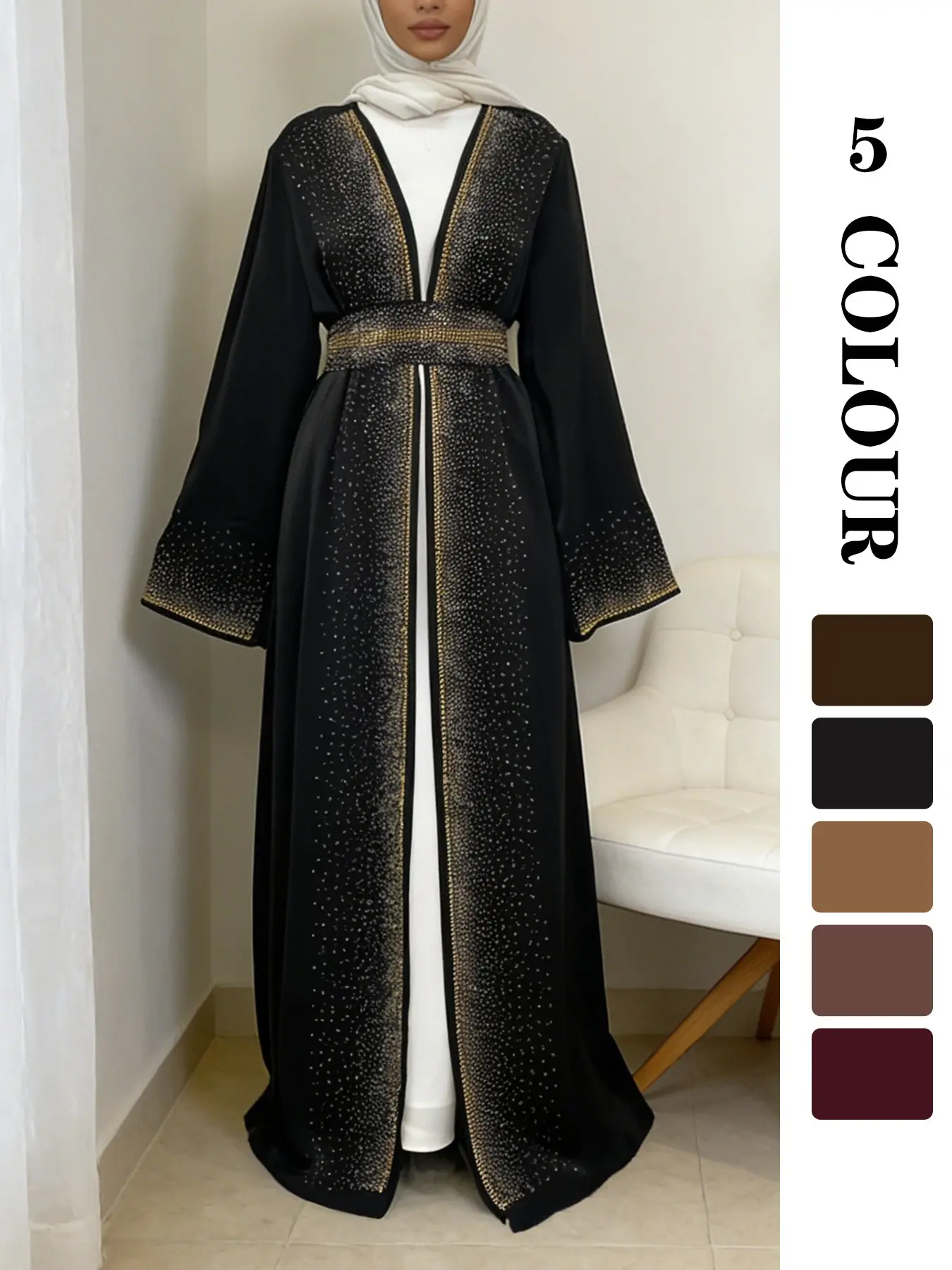 ·【Versatile Elegance】: Perfect for a variety of occasions, from daily wear to special events, this arabic clothing-glitter rhinestone embellished belted flounce sleeve abaya is a stunning choice for various modest, long sleeve occasion.