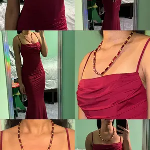 Hi. 5’8 (173cm) about 140lbs. I’m wearing heels with dress. Photos originally for the necklace a coworkers daughter made but i thought id share to reviews. Quality is nice. Felt tight to my thigh/butt but honestly I don’t wear tight dresses much so probably just me. Tbh idk heel height so photo^