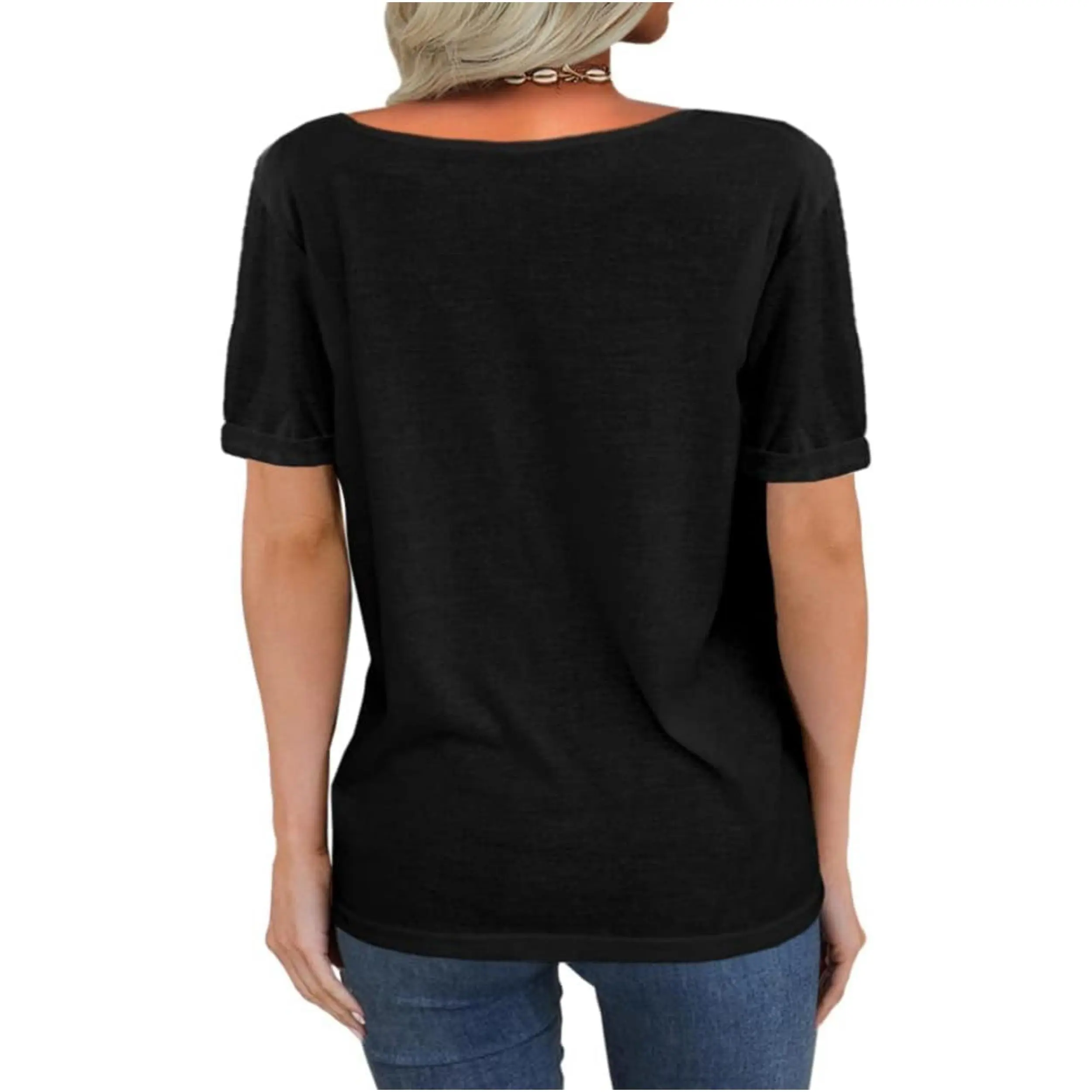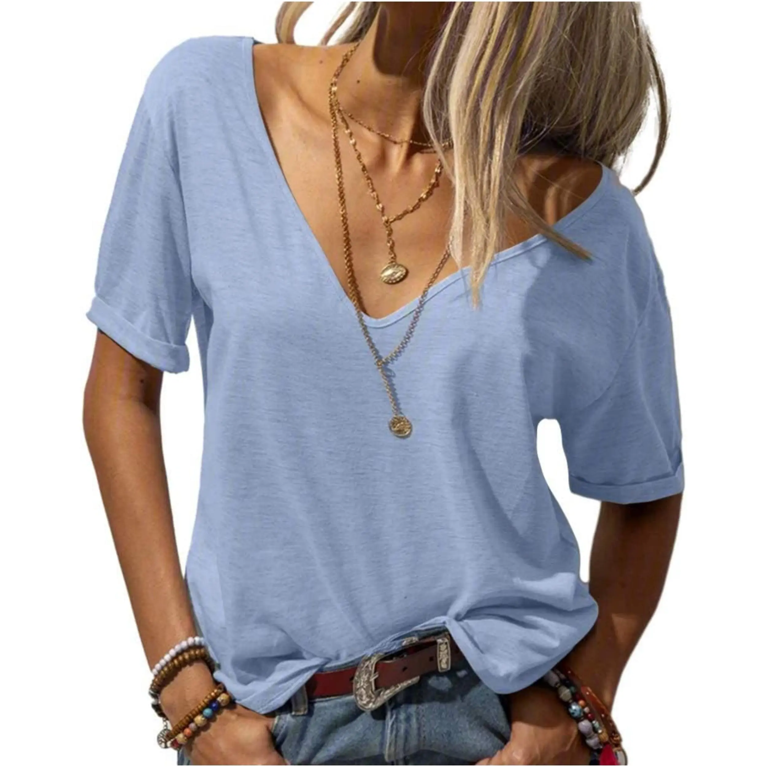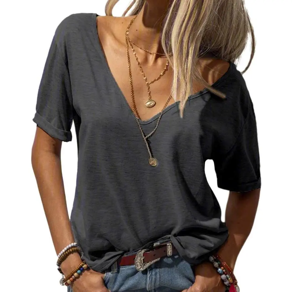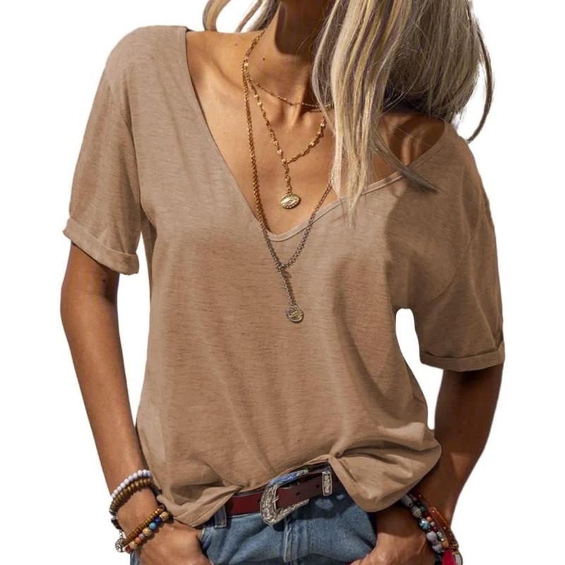 ·Features: Summer T shirt tops, Deep V-Neck, short sleeves,solid, loose, basic,simple Casual Style and Never out of fashion.