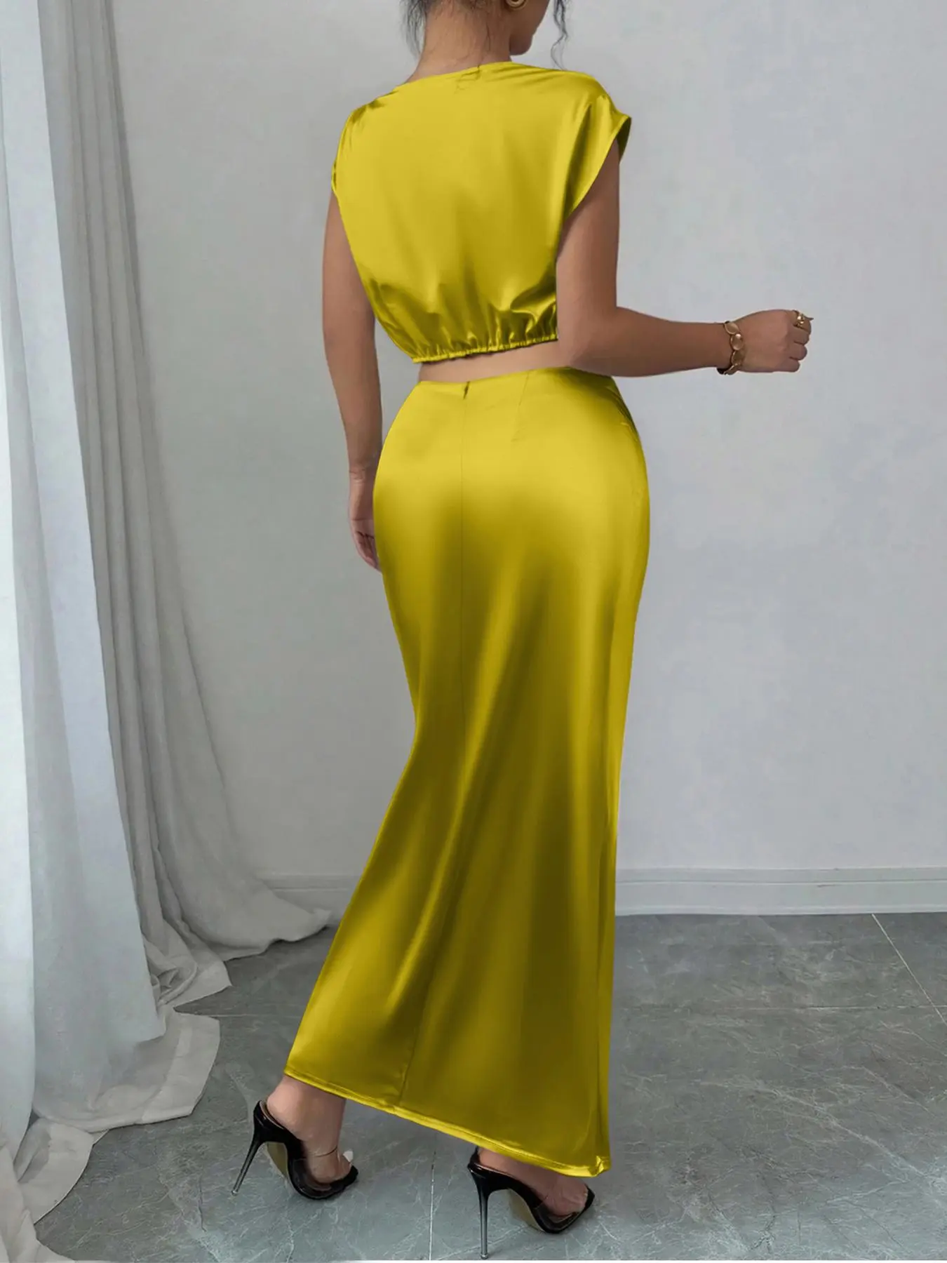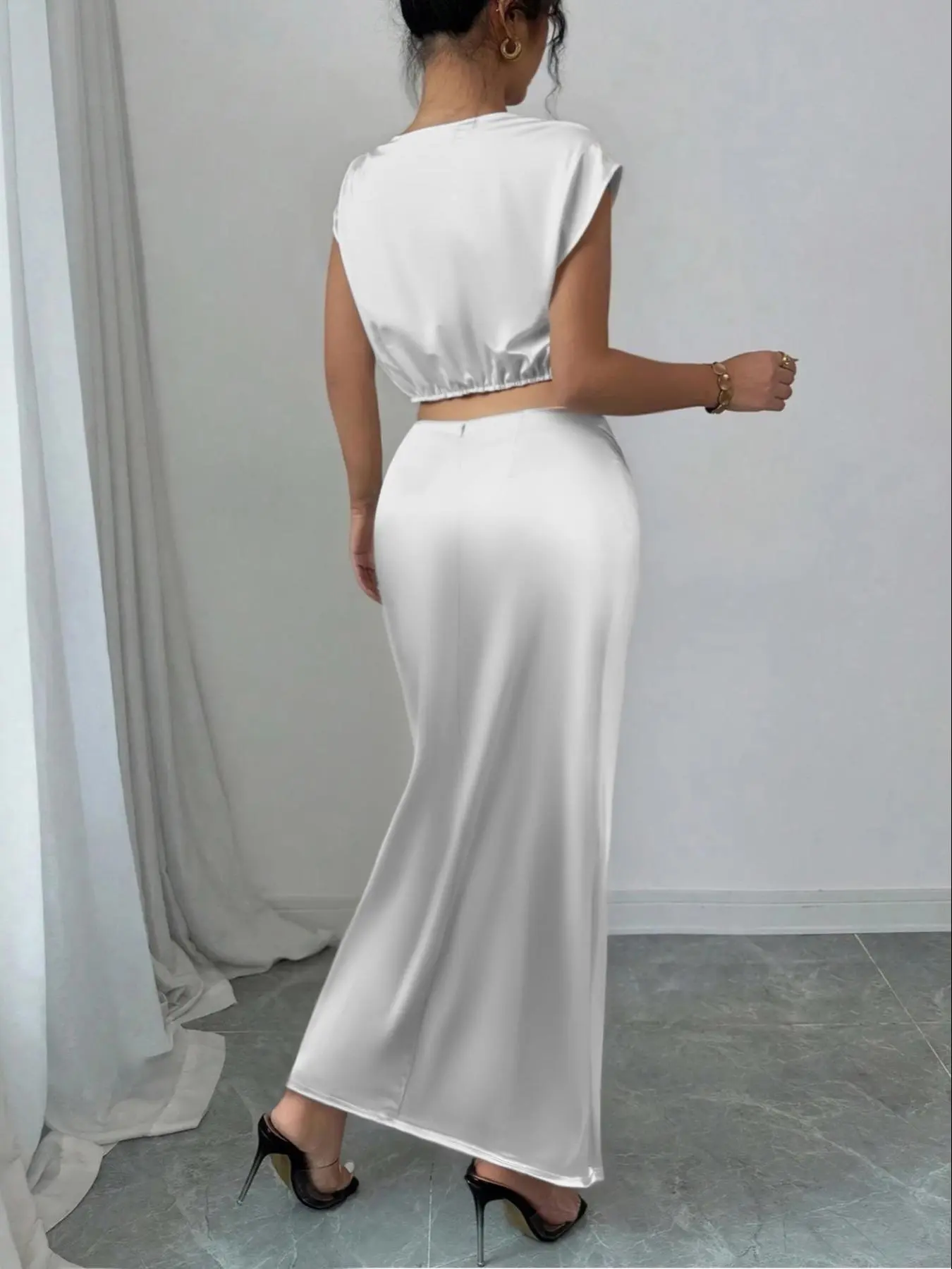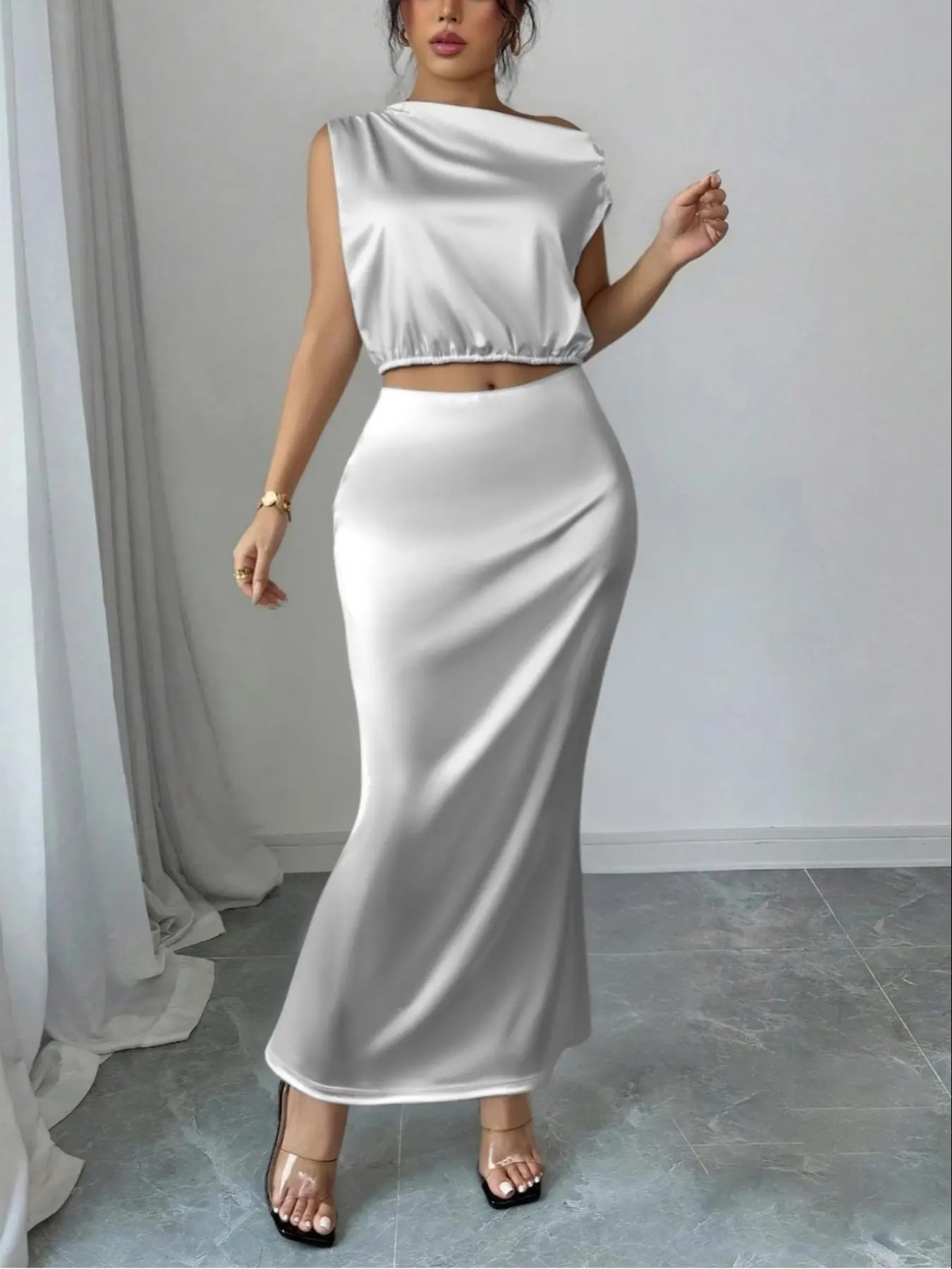 I bought it for my daughter's christening, and it looks lovely. The skirt is high-waisted and fits perfectly. It's not see-through, and my size is M, which was perfect.
