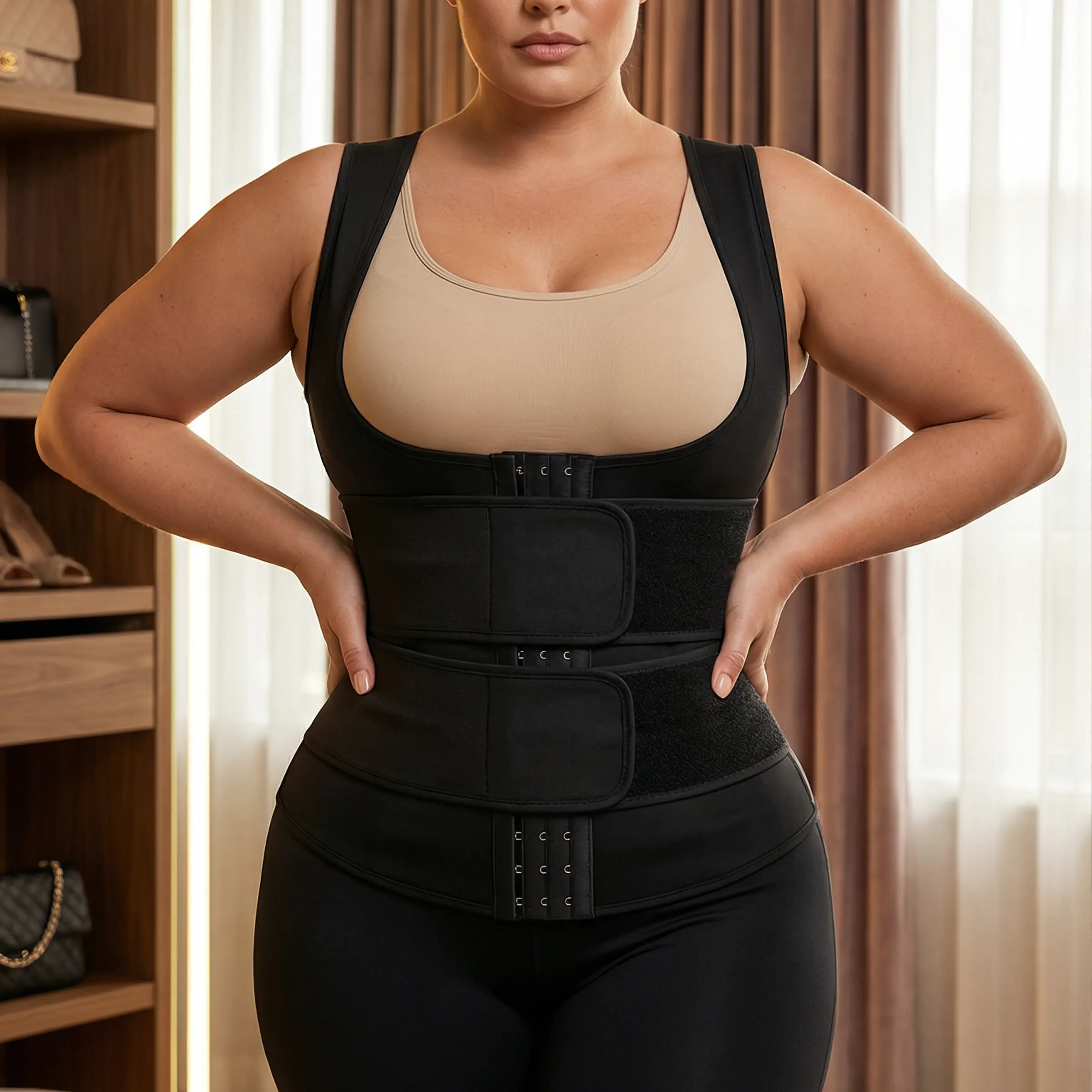 This women’s thermal training vest is perfect for active routines—from gym sessions to daily movement. It offers a secure, adjustable fit with steady support and natural warmth. The triple-fit closure system (hook + adjustable belt) keeps the vest steady while you move. No slipping, no shifting—just a comfortable, confident fit.