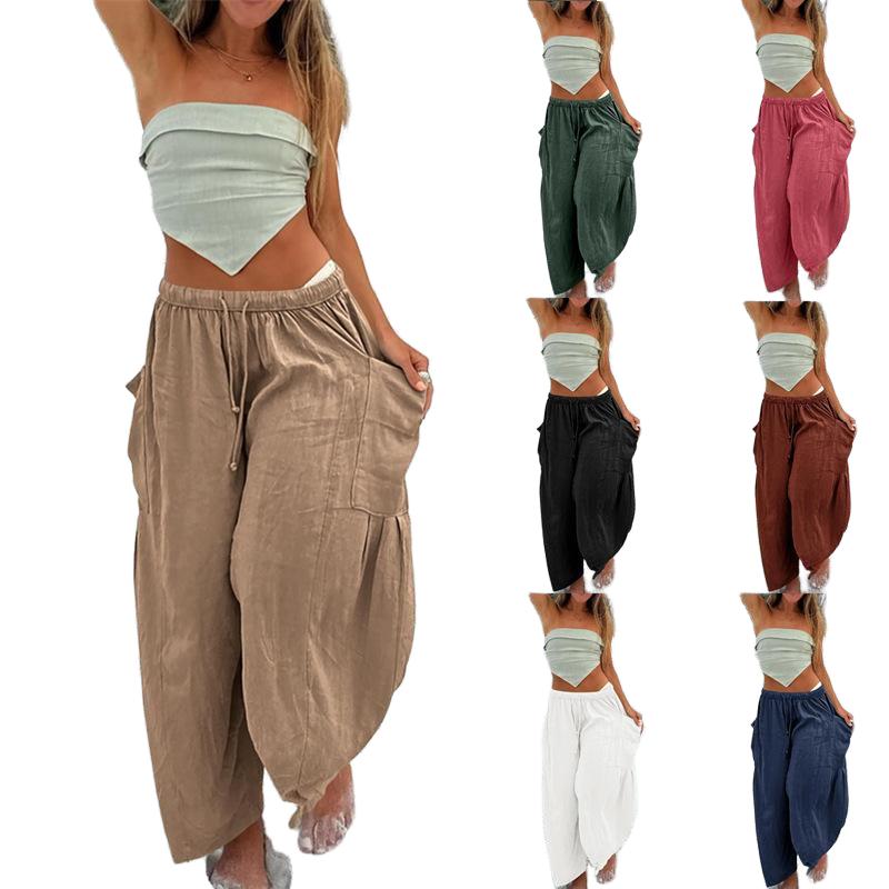 Occasion Ready:Palazzo harem pants with side pockets, wide legs, and elastic waist.