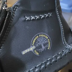 The boots came quick and fit well. They are a little roomy, but that will be good with winter socks. Logo says, "Fashion Fashion Fashion Fash." 😆 Cheap but cute.