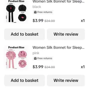 Bought two (black and pink) one for my daughter and one for myself. Absolutely love them. They stay in place through the night and I don't have to worry about them falling off while I'm sleeping. Plus I definitely see a difference in both my daughters and my hair since we started wearing them.