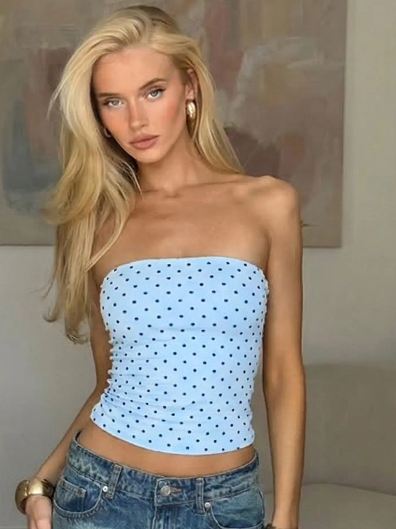 Women Summer Sleeveless Strapless Party Club Beach Vacation Polka Dot Tube Tops