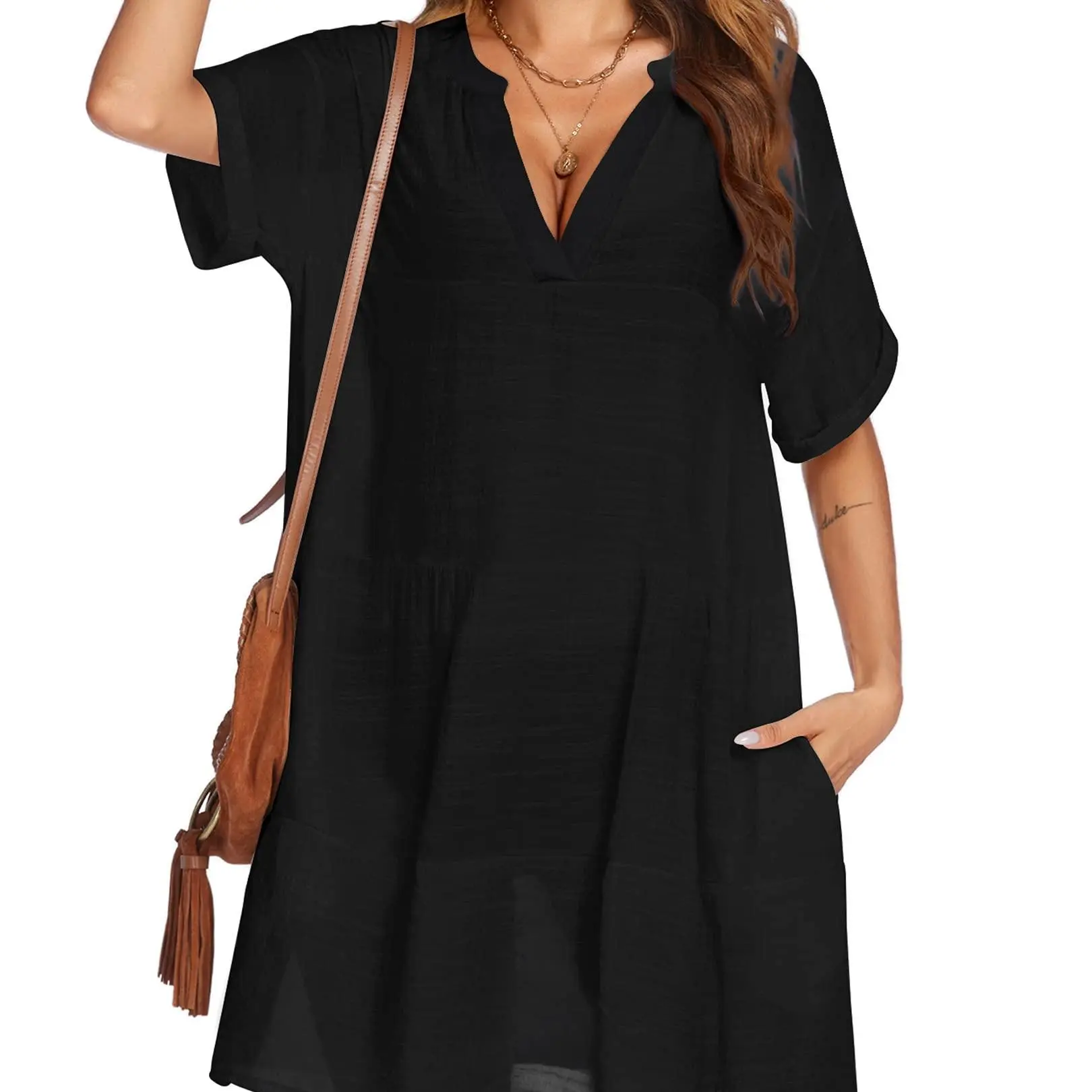 This cover-up is not just functional but also stylish. It can be worn over various swimsuits. The V-neck design adds a touch of elegance. Whether you're heading to the beach or pool, this cover-up is a must-have.