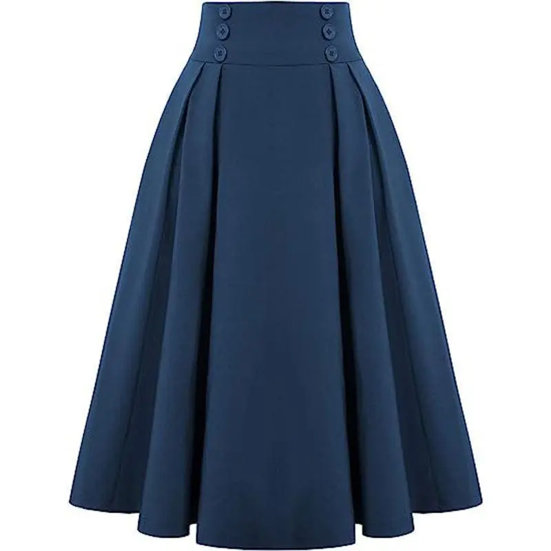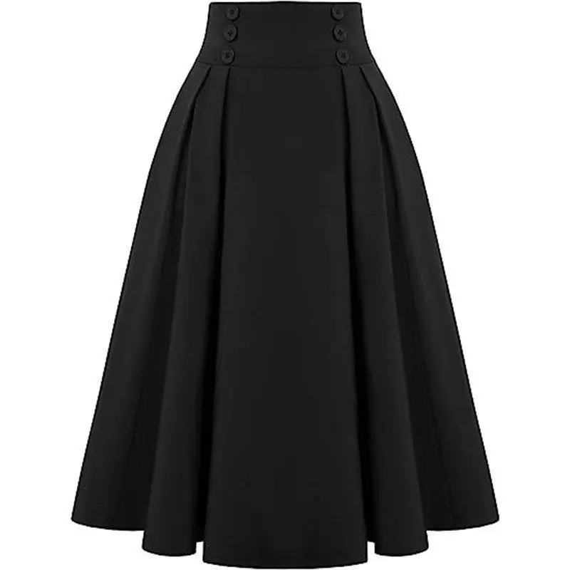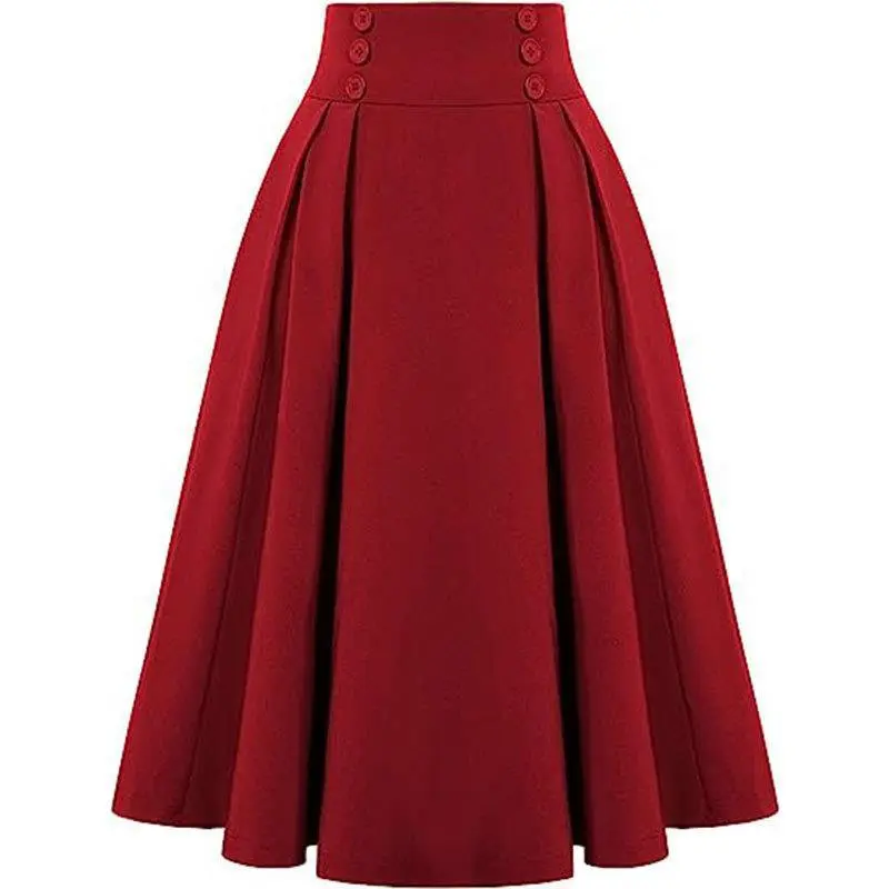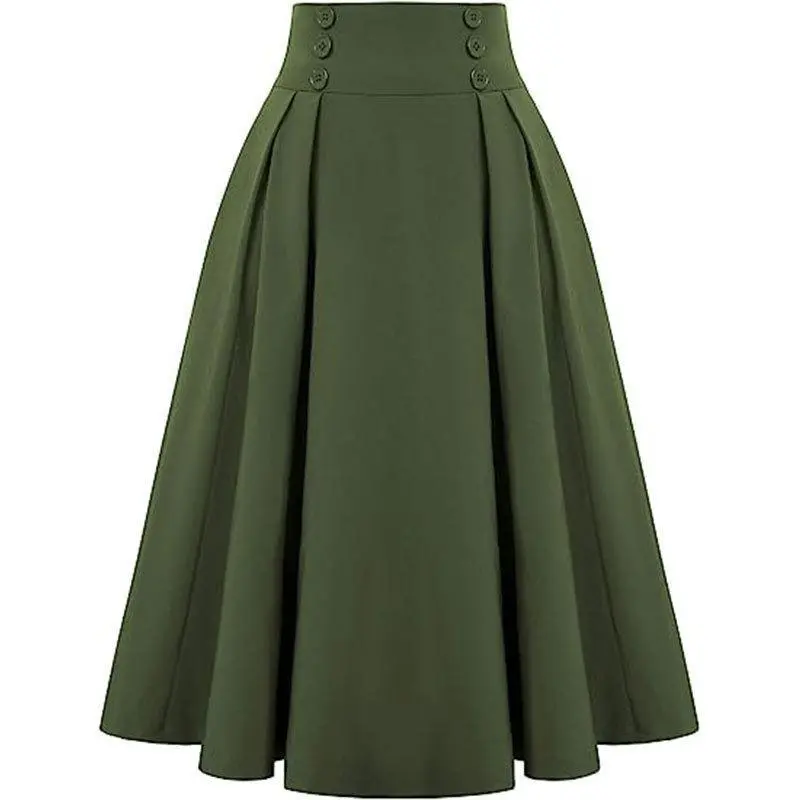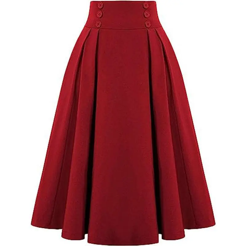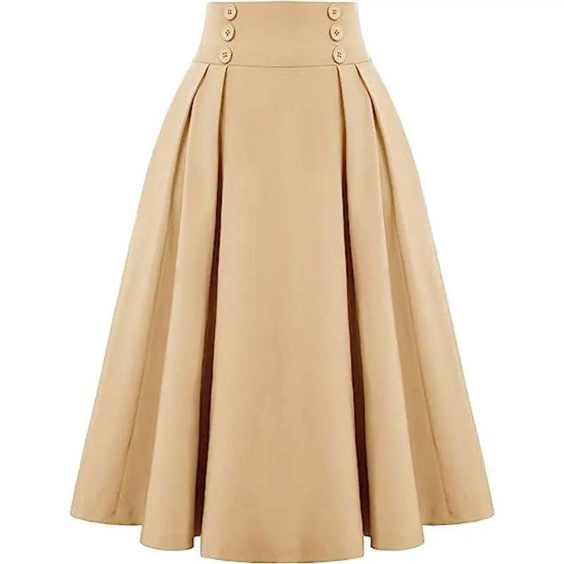 5. Women Vintage Skirt High Waist Pleated Skirt Midi A-Line Skirt with Pockets
