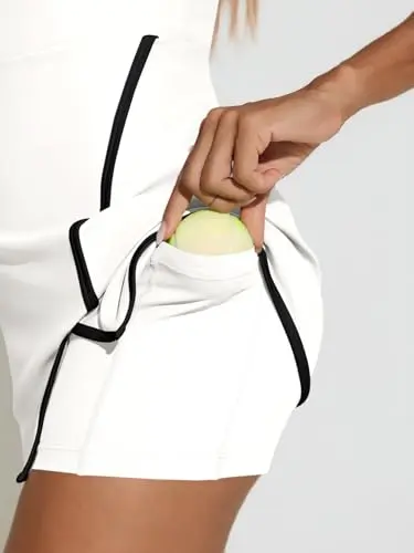 This tennis dress features built-in shorts for full coverage. It allows free movement without hindrance. Additional pockets in the undershorts are ideal for storing essentials. The dress combines fashion with functionality, perfect for various sports.