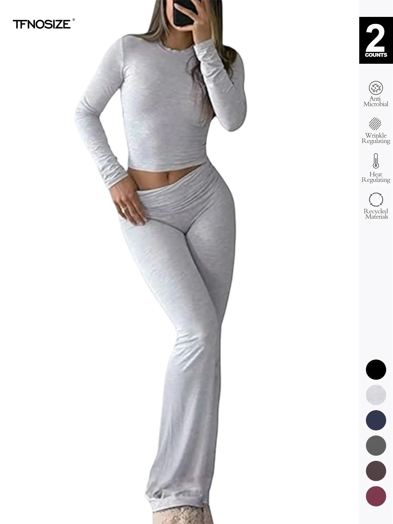 Women's 2 Piece Casual Pajama Set, Slim Fit Long Sleeve Top & Low Rise Bell Bottoms, Versatile Yoga Loungewear for All Seasons,Airport Outfit