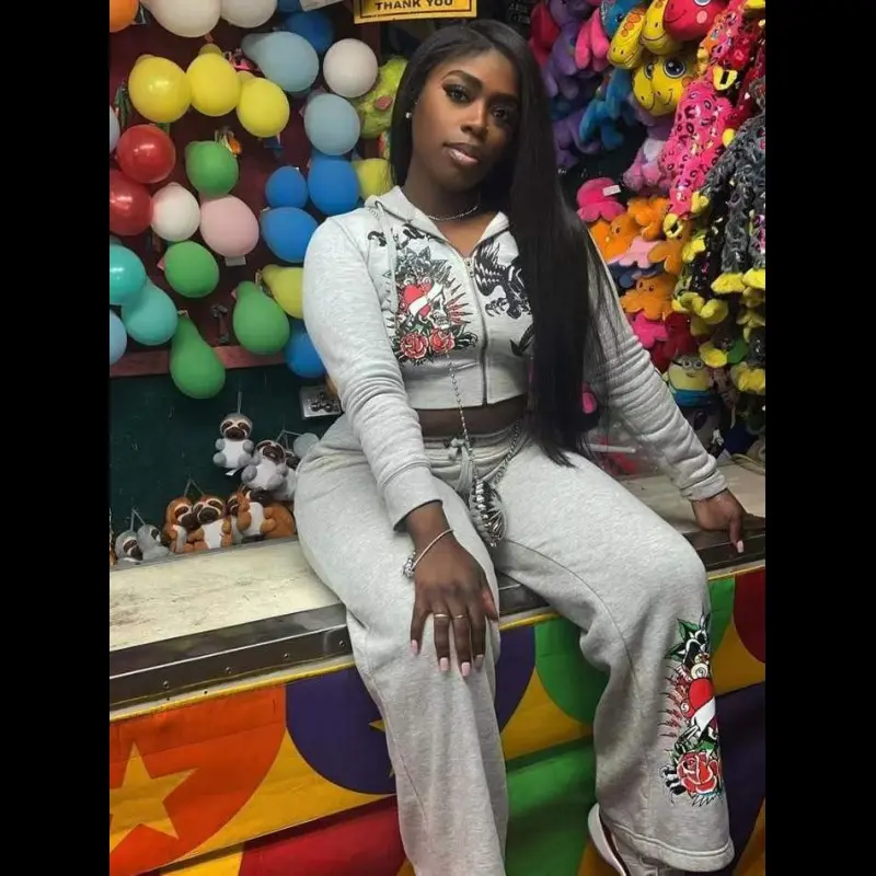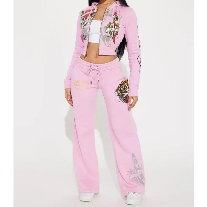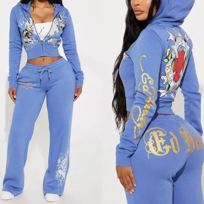 2 Piece Sets Womens Clothing Letter Print Sweatsuit Hoodie Zipper Hoodie and Sweat Pants Suits Tracksuit Set Womenswear