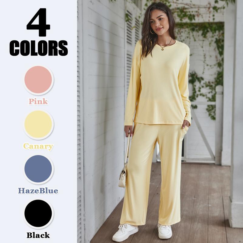 ·Trendy Queen Womens Soft Loungewear Sets Tunic Pullover Wide Leg Pants Sweatsuit