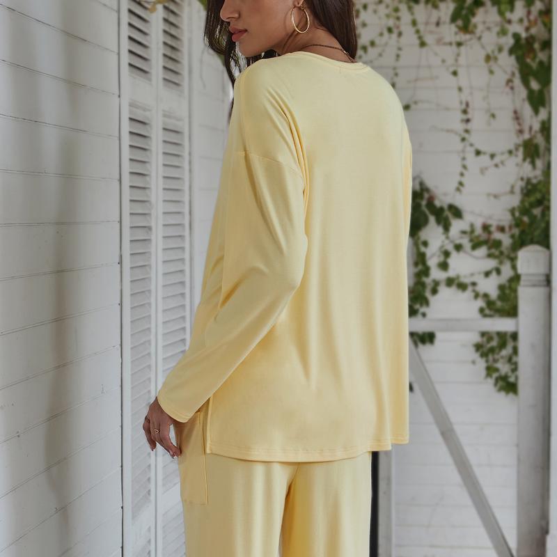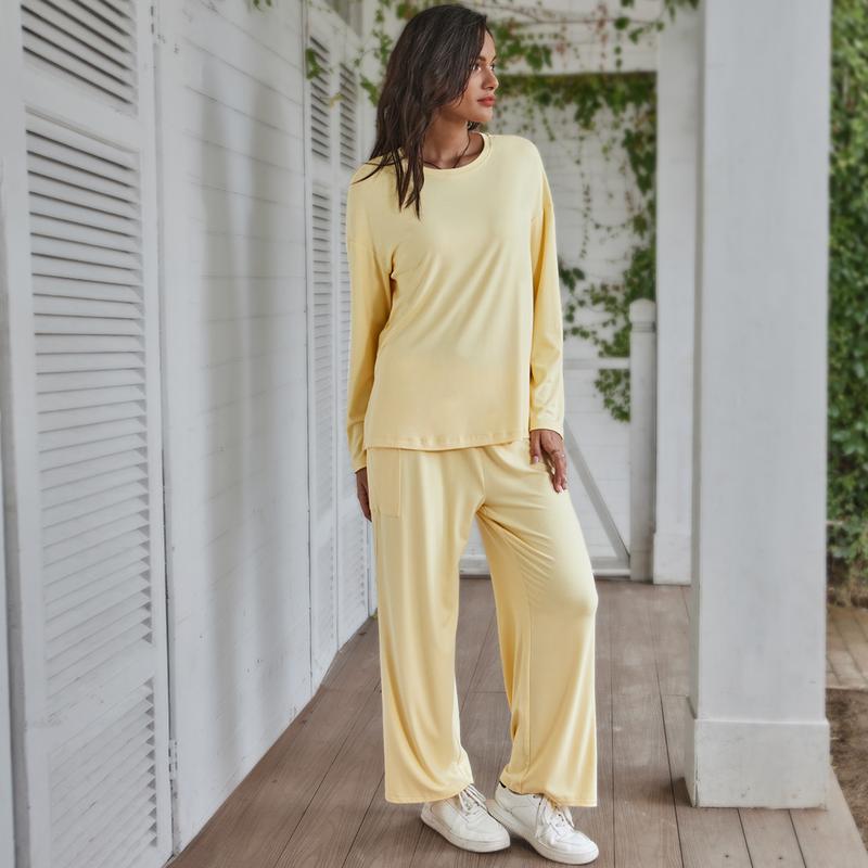 This lounge set is meant for just that STAYING HOME 💛💤 #loungeset #twopieceset #sleepwear #sleepwearfashion #loungewearstyle
