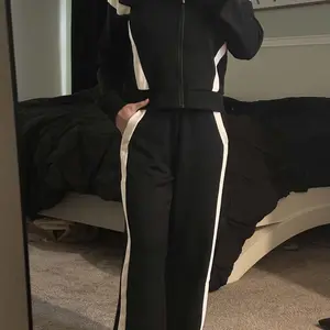 Full Zip Up/ Long Sleeve Sweatshirts/ Wide Leg Sweatpents/ Convenient Pockets/ Solid Colors/ Distinctive Patchwork Design