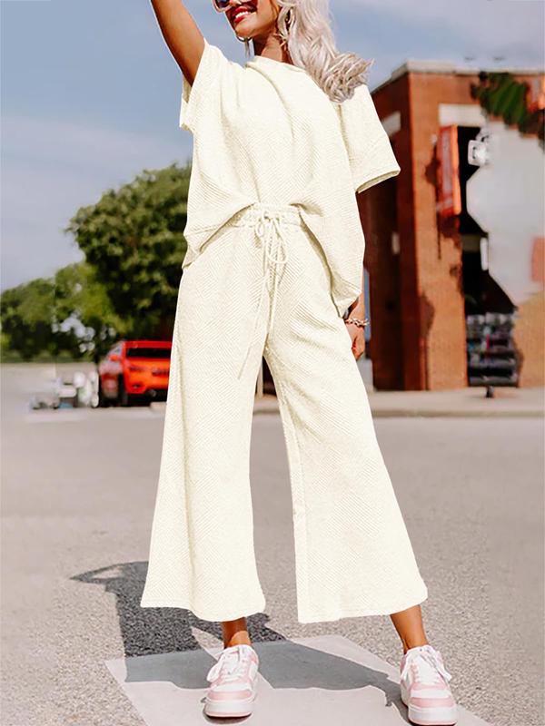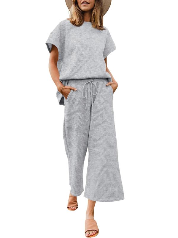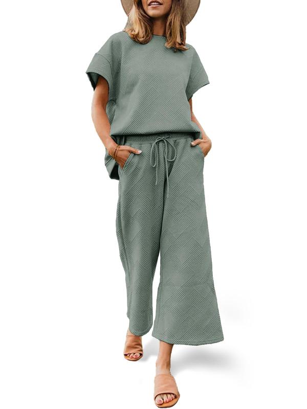 👚 Chic & Comfy Design: Includes a relaxed-fit round neck short sleeve top and matching wide-leg pants with an adjustable drawstring waist and pockets. The minimalist silhouette makes it easy to stay stylish and comfy all day.