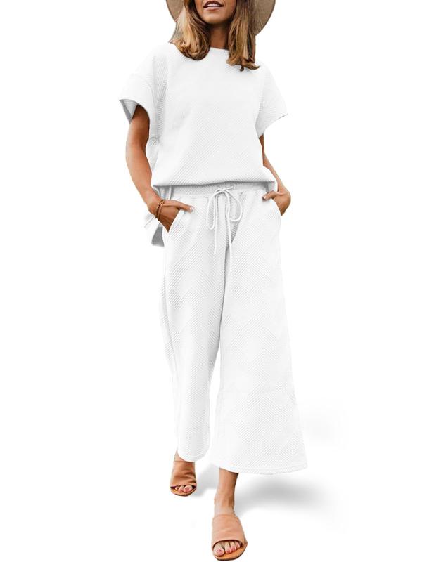 FISOEW 2025 CASUAL CHIC SET SHORT SLEEVE TOP & CROPPED DRAWSTRING PANTS