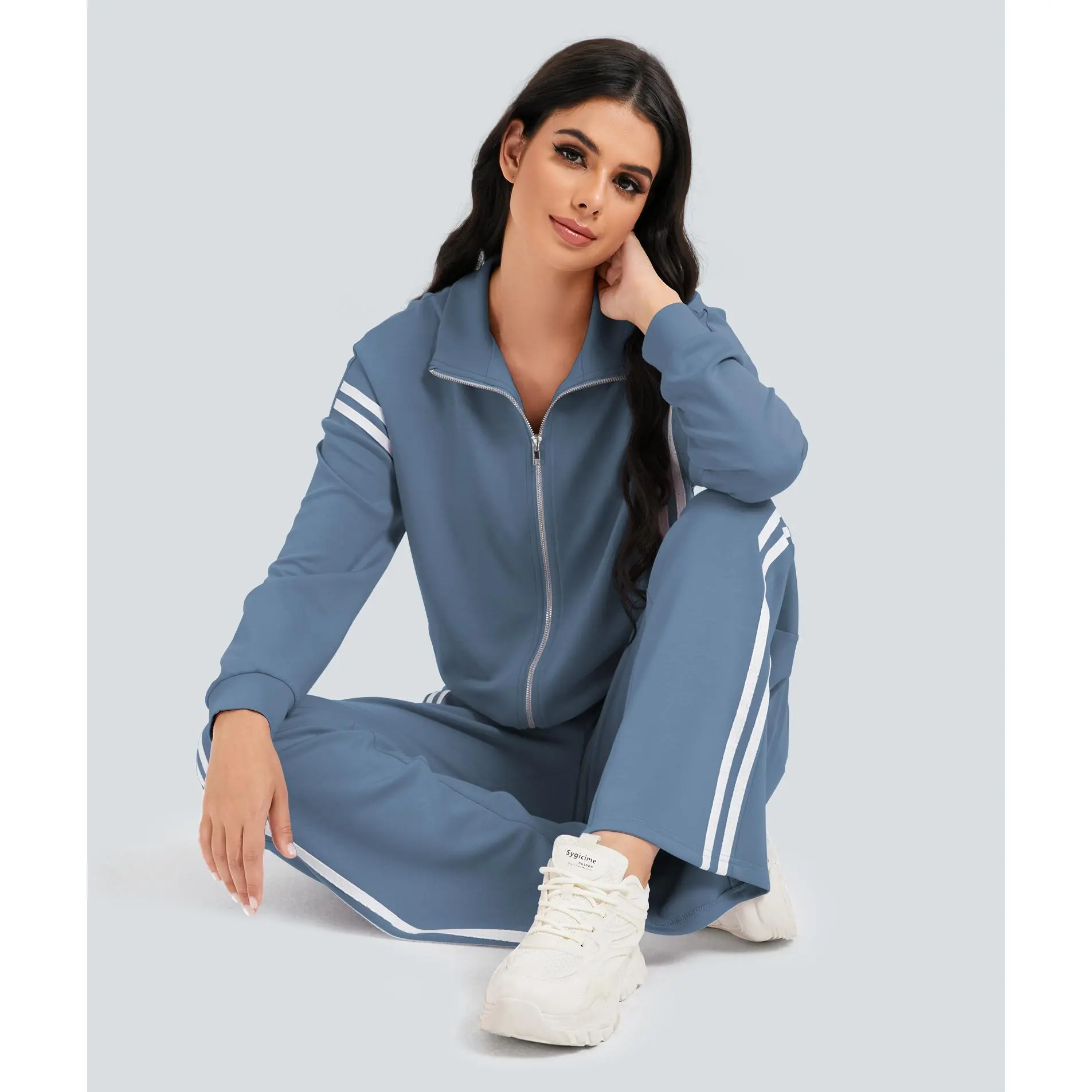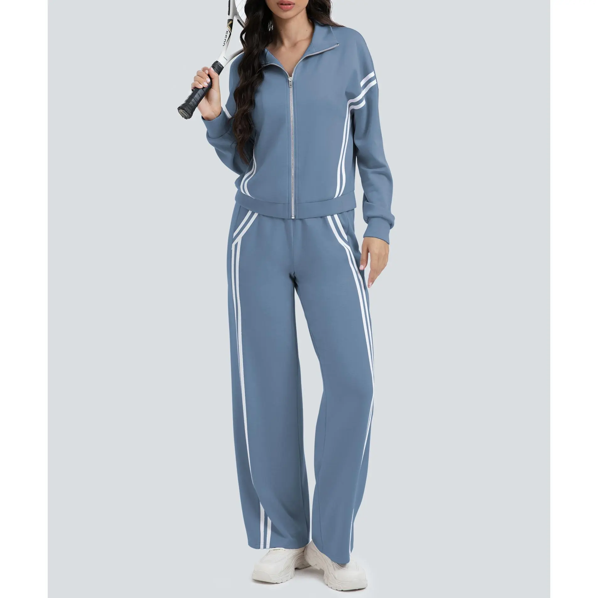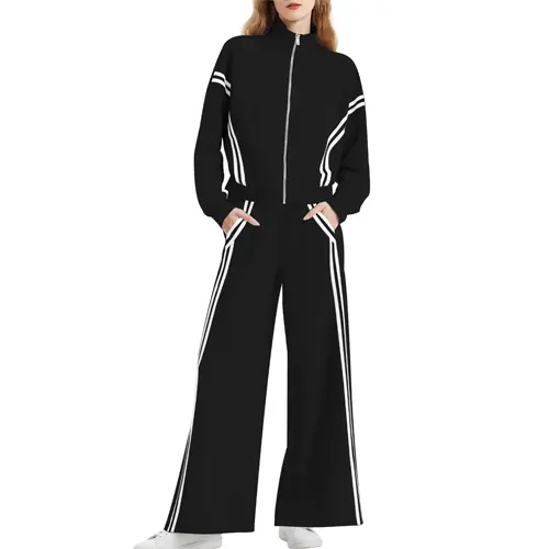 ·【Eye-Catching Design】Women's tracksuit features contrasting side stripes for an elongated effect. Zip-up, long sleeve, stand collar jacket, high waist, wide-leg pants, with pockets, loose fit to suit all body types. It is a suit that meets comfort, style and practicality.