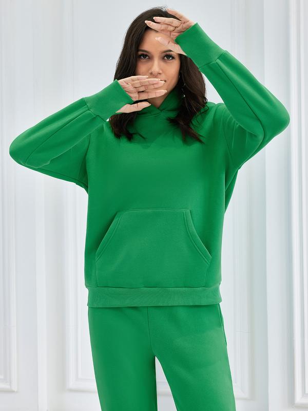 The oversized drop shoulder hoodie offers ample space for movement. Its solid color and y2k casual style make it a standout piece. The kangaroo pocket adds functionality. Matching high-waist sweatpants feature an elastic waistband and adjustable drawstring for a perfect fit. Both pieces are versatile and stylish.