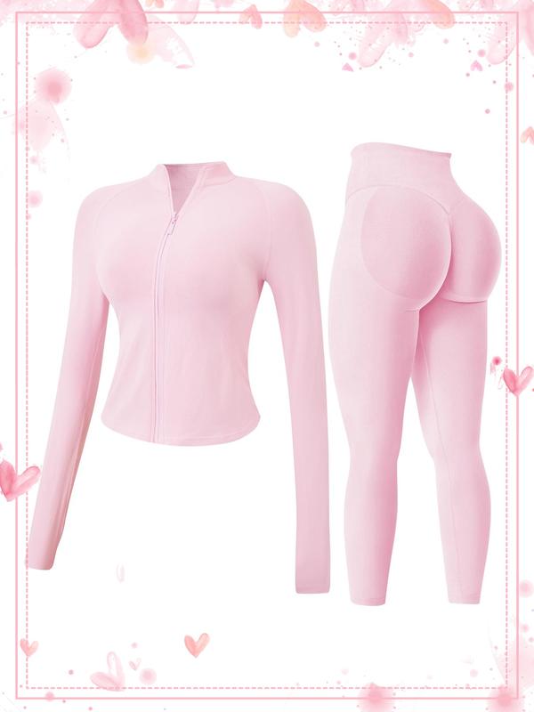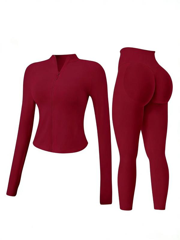Women's 2-piece Tracksuit set, Sweat Suit Set, Seamless Stand-collar Zipper Windproof Slim Warm Long Sleeve Top & Tight Hip Lifting Pants, Quick Dry Stretchy Breathable with Thumb Holes