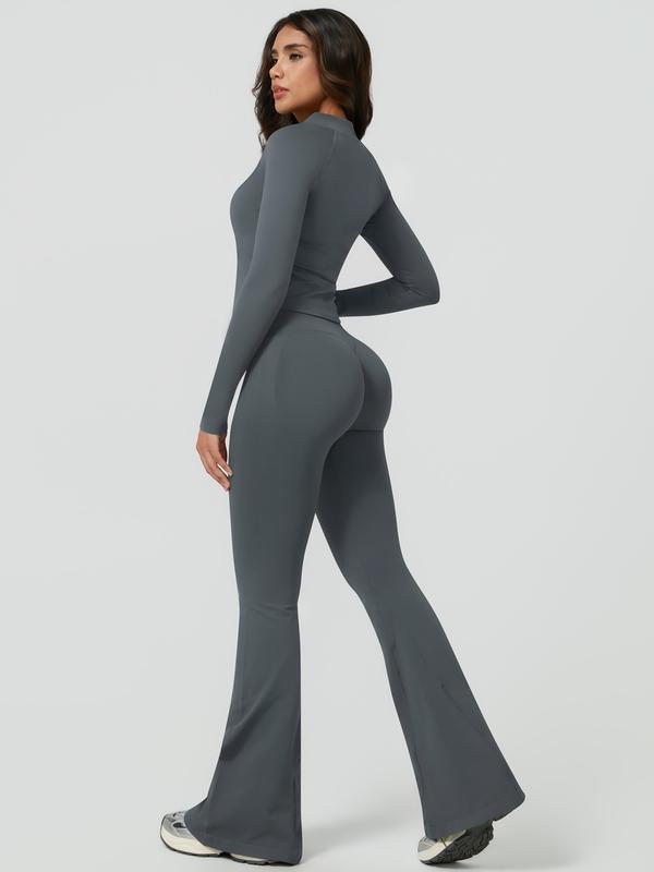 Women's 2-Piece Sportswear Set, Long Sleeve Slim Fit Top & High Waist Tight-Fitting Pants, Yoga Gym Running Comfortable Breathable, Sweatsuit Set