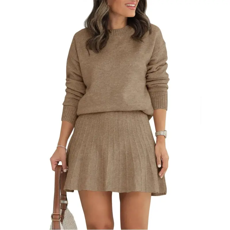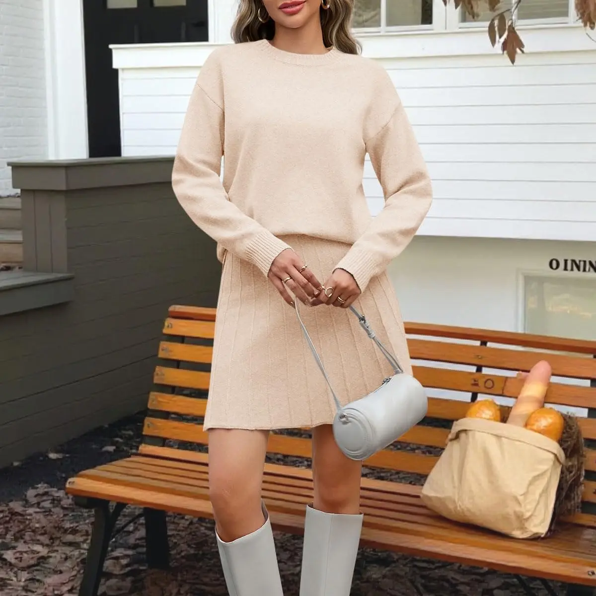 ·Trendy Design: Sweater Skirt 2 Piece Sets for women, include a crewneck long sleeve knitted top and tennis-style pleated mini skirt. The outfit combines style and functionality effortlessly, its minimalist design offer a versatile and flattering fit for you