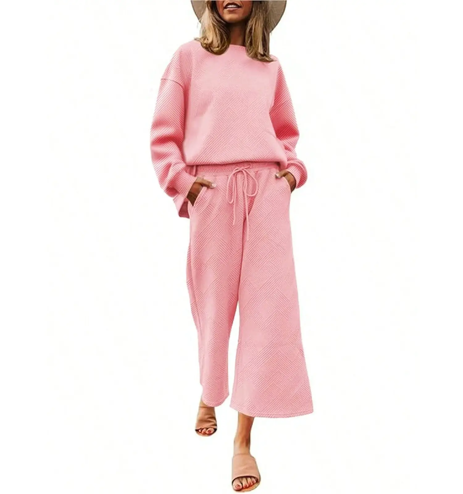 Made with soft fabric, this textured lounge set ensures comfort all night. Perfect for spring, fall, or winter indoor wear. It maintains its shape even after multiple washes, making it durable for your wardrobe. Enjoy the quality material that keeps you cozy.