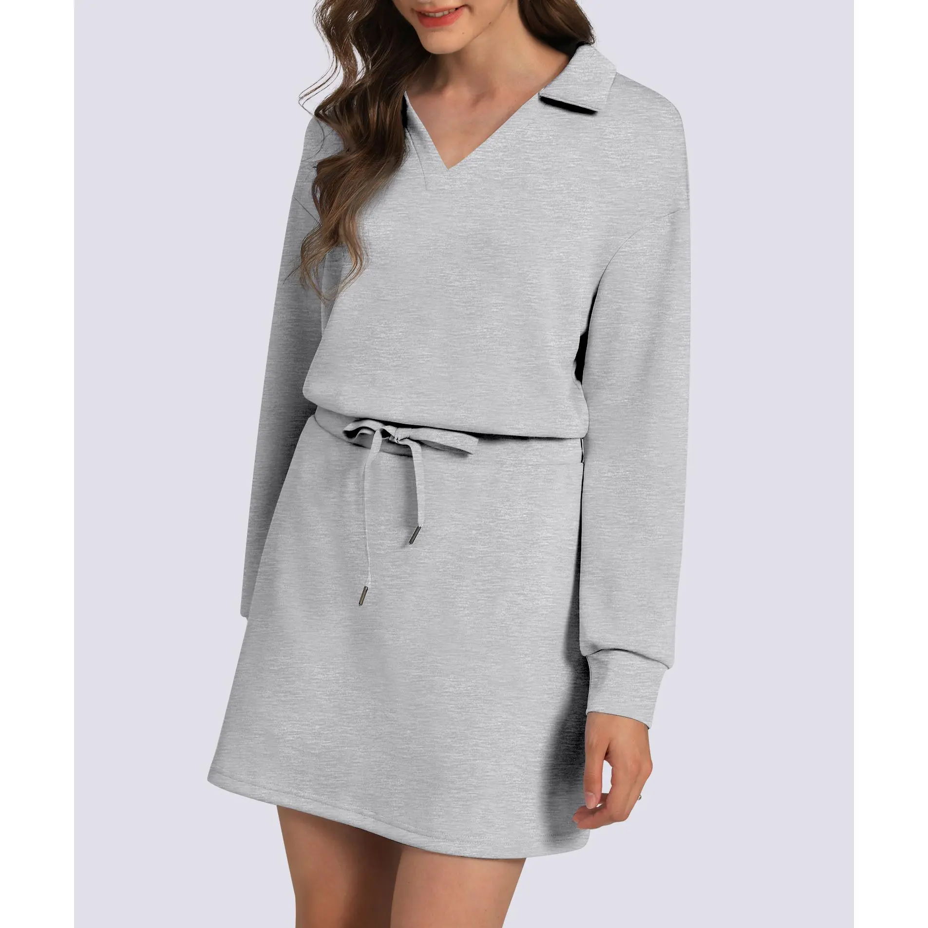 Womens sweatsuit crafted from skin-friendly, soft material. Lightweight, breathable, and stretchable, ensuring ultimate comfort during leisurely activities. Enjoy the perfect blend of style and functionality in every move. This set includes a loose V-neck sweatshirt and skort with a drawstring waist.