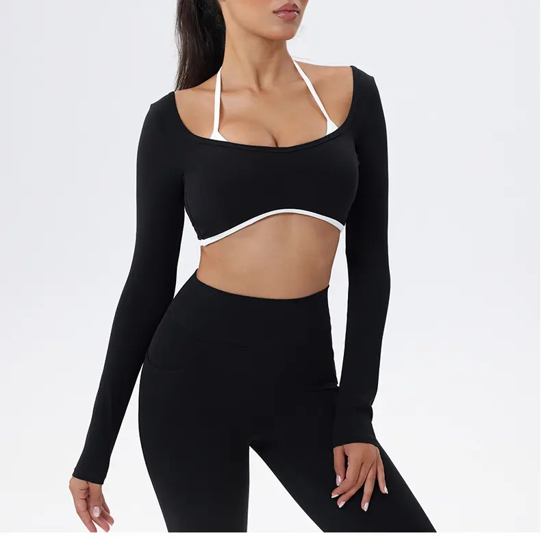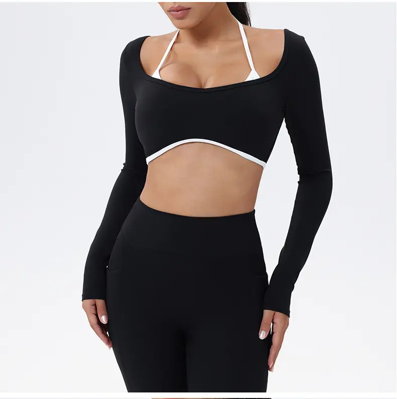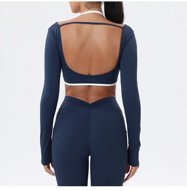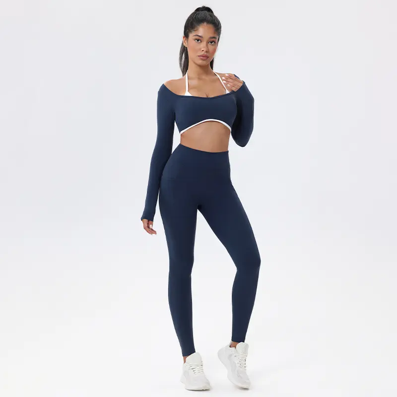 Fitness set multifunctional, suitable for various activities.The high-waisted leggings offer support, while the long-sleeve cropped top acts as coverage.This combo makes it an excellent choice for gym workouts, yoga classes, or any active pursuits.