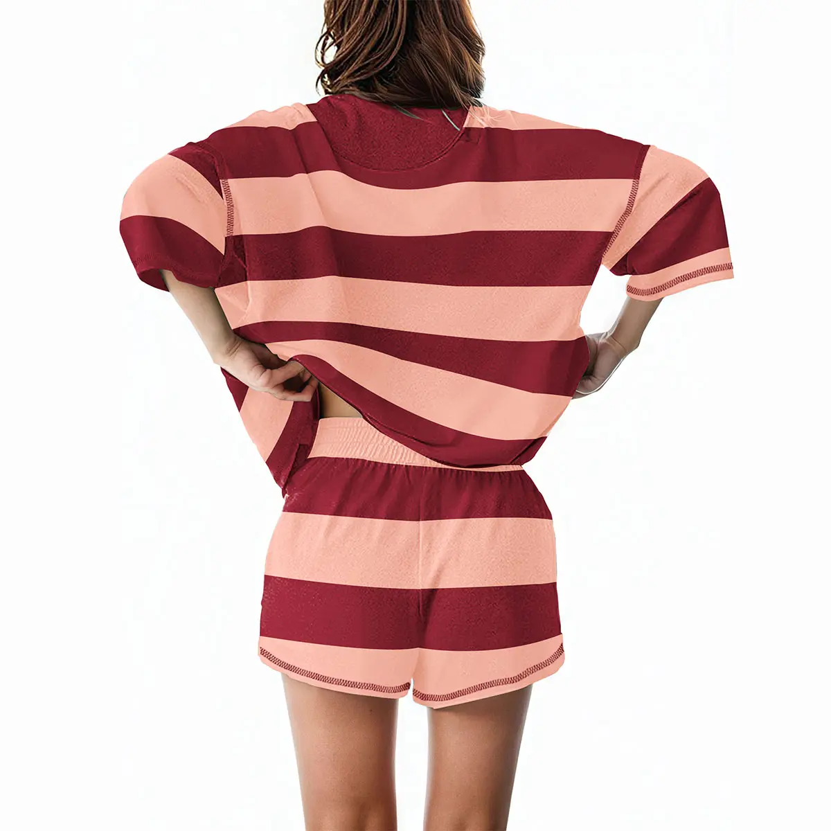 Stay active and stylish in this women’s 2 piece workout set. Made with a soft, breathable cotton blend, it offers the perfect combination of comfort, stretch, and flexibility. The wide striped pattern adds a bold touch, while functional features like a half-zip top and side pockets make this outfit practical as well as eye-catching. The elastic waist shorts offer an easy, flattering fit—ideal for running, lifting, stretching, or simply chilling at home. Whether you're hitting the gym or heading out for a walk, this set delivers reliable performance with all-day comfort.