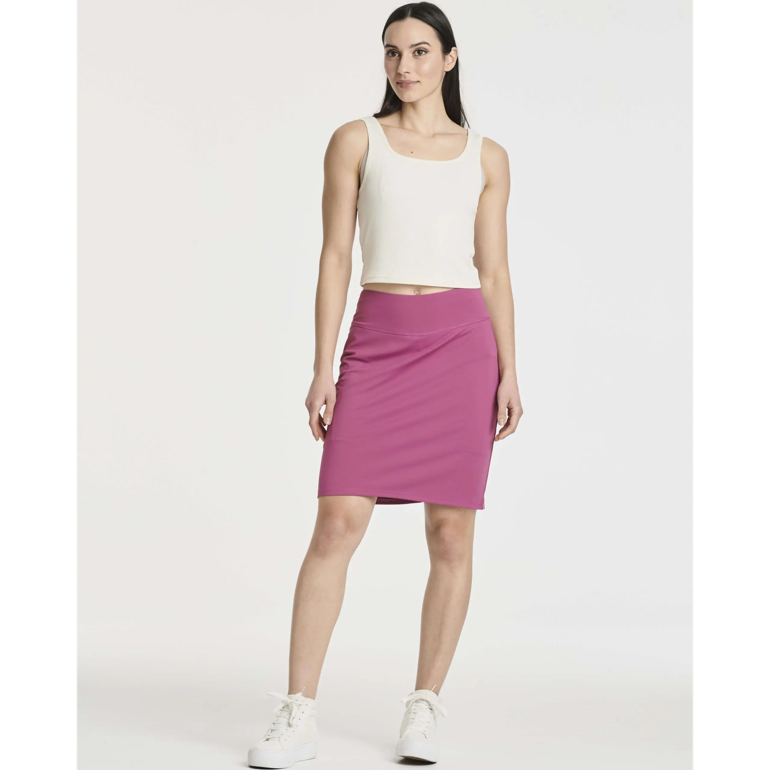 These skirts with built-in shorts are amazing! The fabric is buttery soft and stretchy & SO comfortable. The shorts have small pockets for keys or a phone too! I wear an 8-10 and the medium fit perfectly. These can be dressed down with sneakers or flats or add a heel and a dressier top for work.