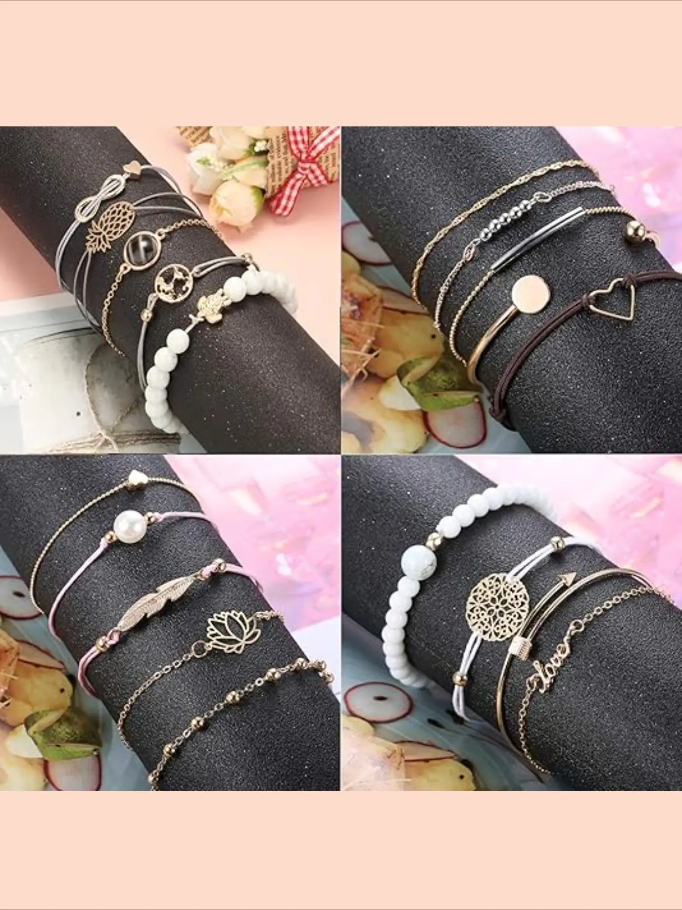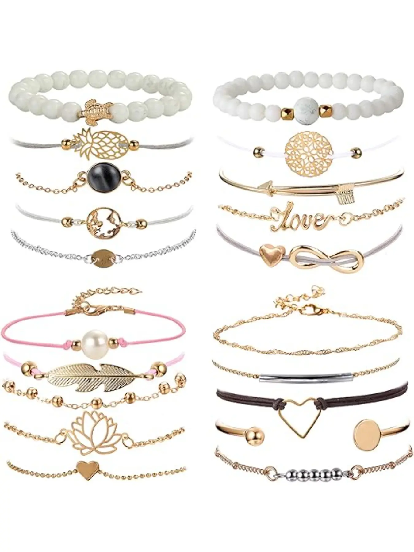 20 Pcs String Bracelets for Women Trendy Multiple Stackable Wrap Bangle Assorted Surfer Charm Bracelet Stack Adjustable Anklet Jewelry