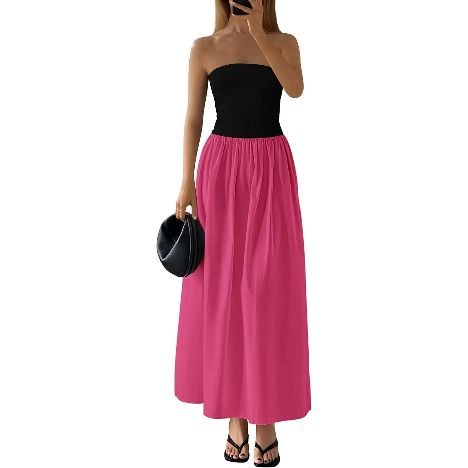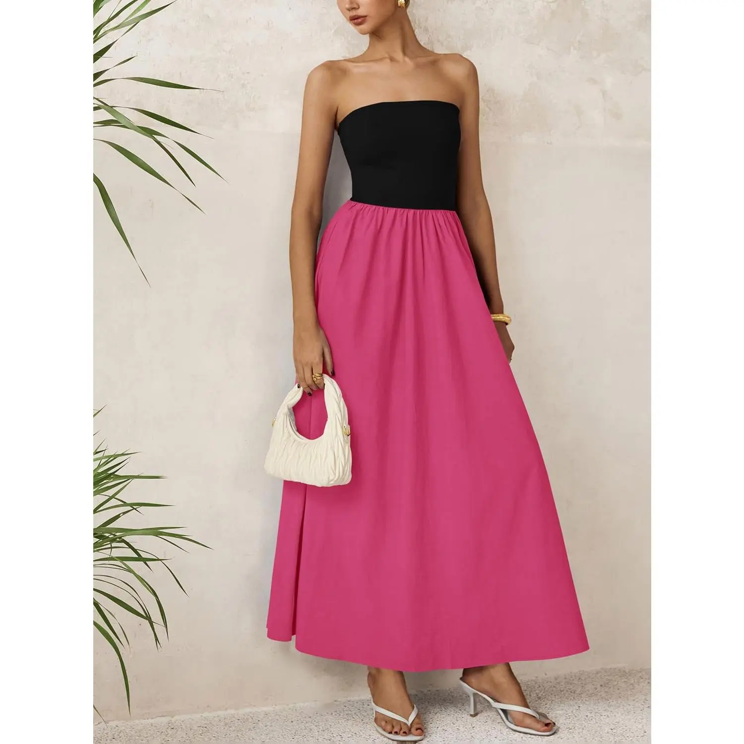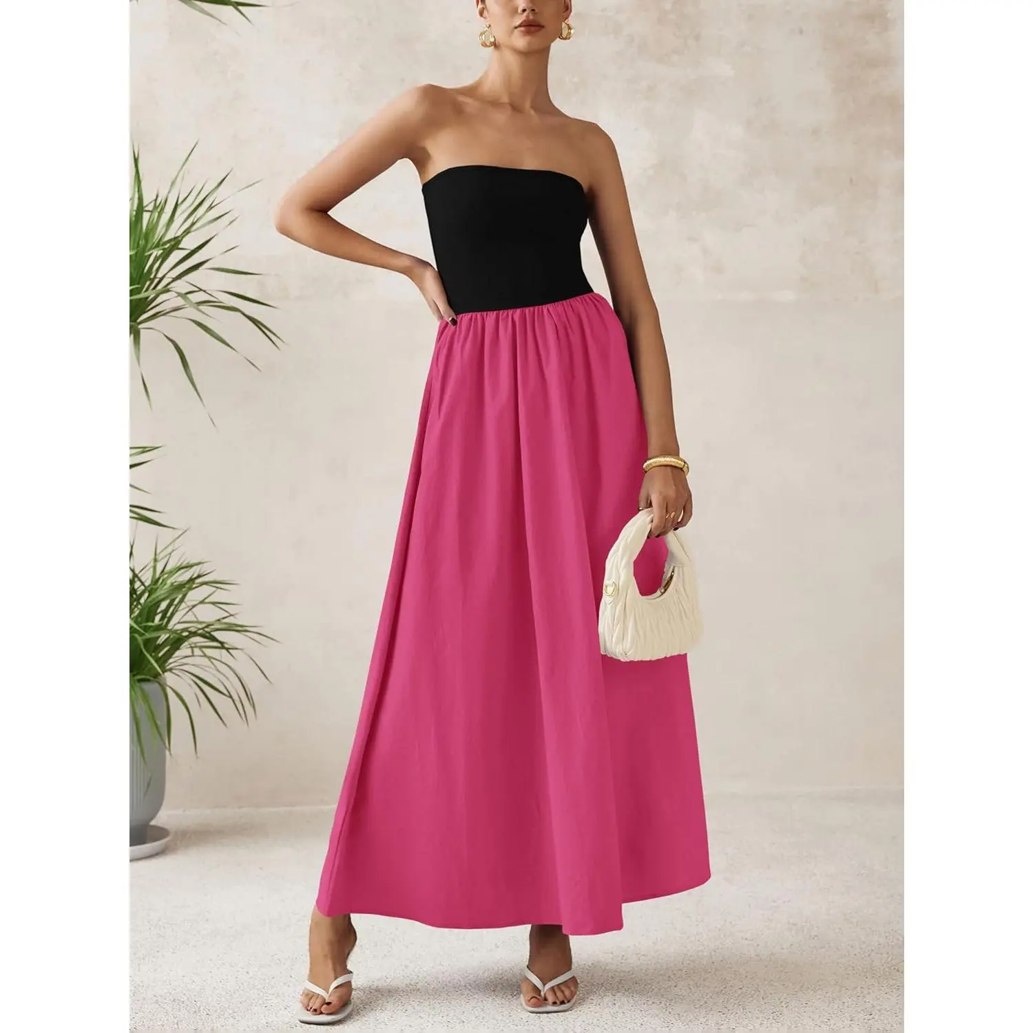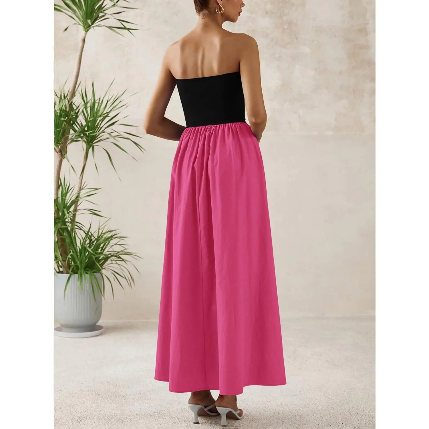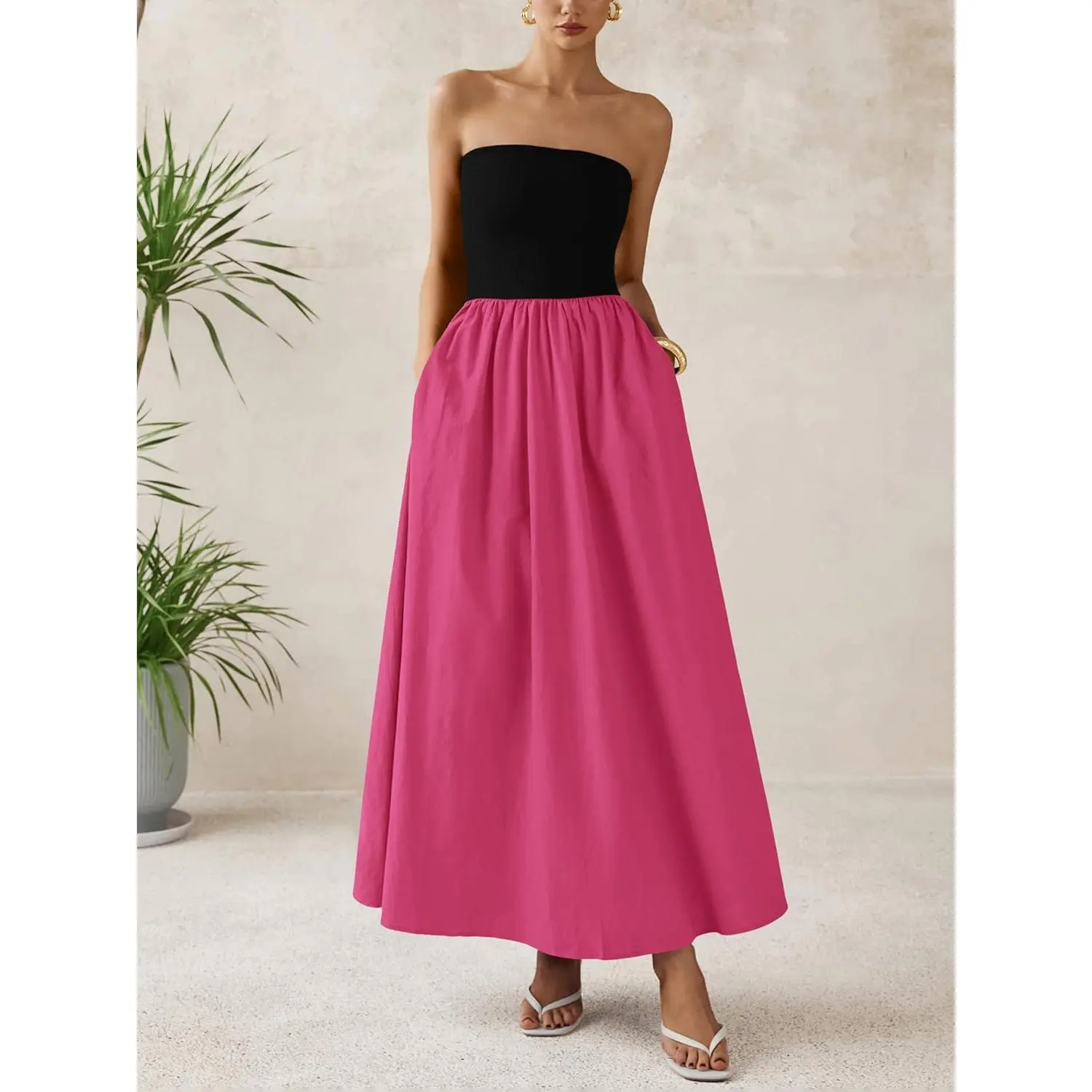 Design: Tube top dress,a line hem,strapless maxi dress formal,backless,off shoulder dress,strapless long dress,one-piece dress,side pockets,patchwork design,elastic in the waist.Tube top design enhances shoulder and neckline exposure,allowing for a breezy and elegant look,pockets provides convenience for small essentials