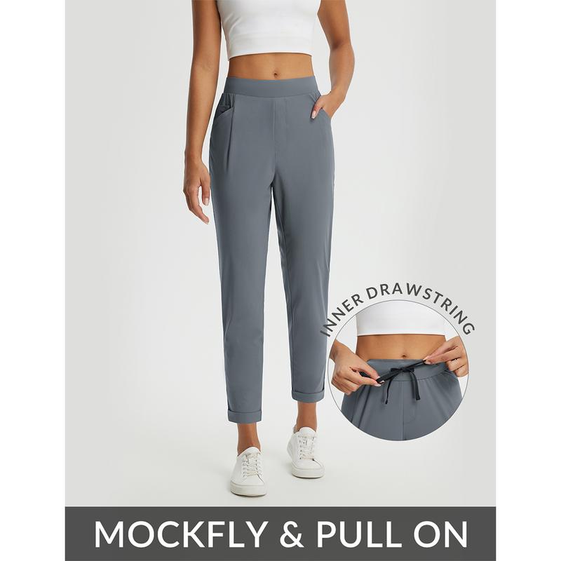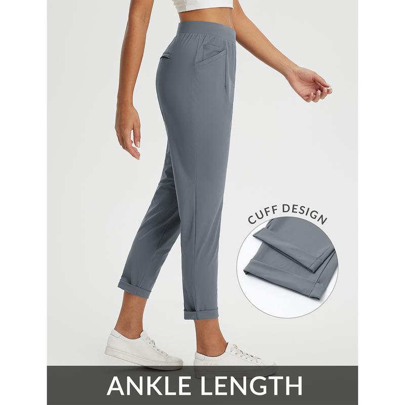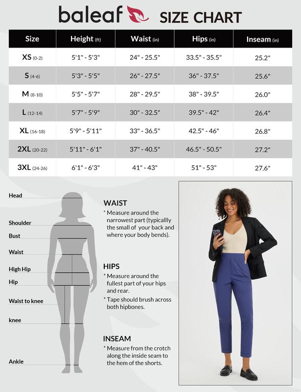 Baleaf Women's 25.5" Petite Business Casual Pants, Lightweight Stretch Ankle Dress Trousers with Zipper Pockets for Work, Office, Travel