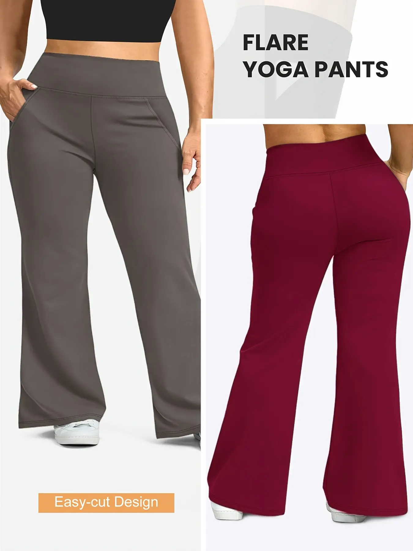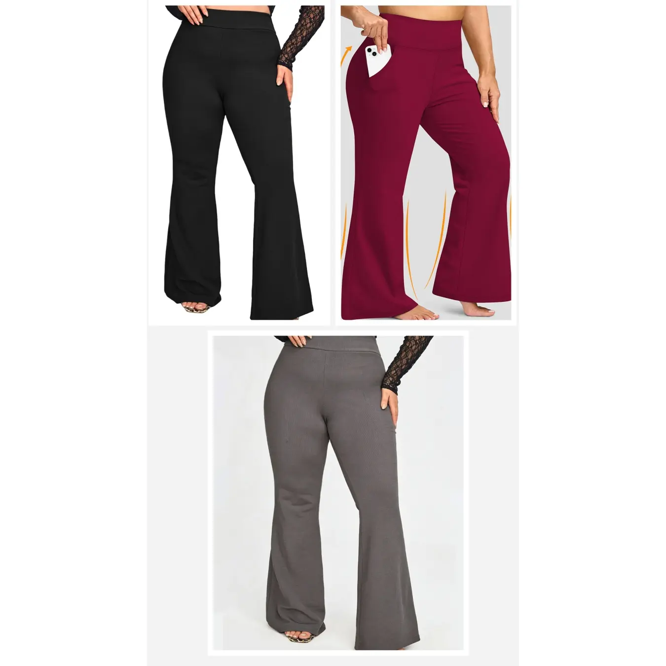 3-Pack Women's Business Casual Elegant Flared Bell-Bottom Pants - Solid Color High-Rise Medium-Stretch Trousers, Wide-Leg Office Wear, Machine Washable, Full-Length Loose-Fit Workout Trousers with Elastic Waist, Pants Suitable for Gym, Running, Yoga