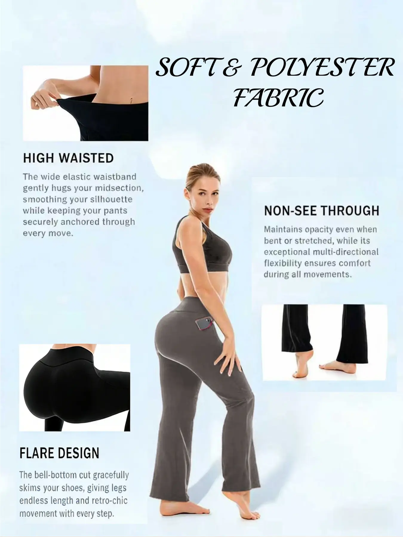 ·3pcs Set: Includes solid-color tummy control wide-leg flare pants. Perfect for all-season wear. 🌞